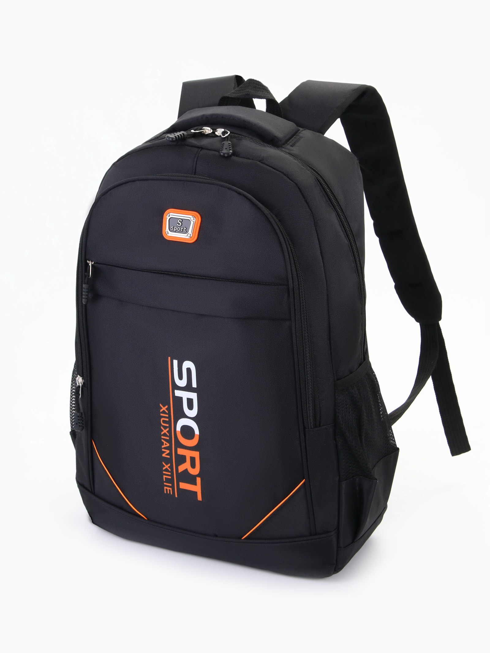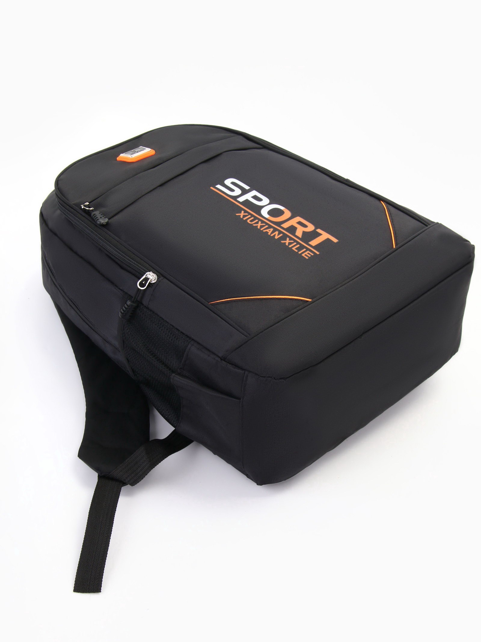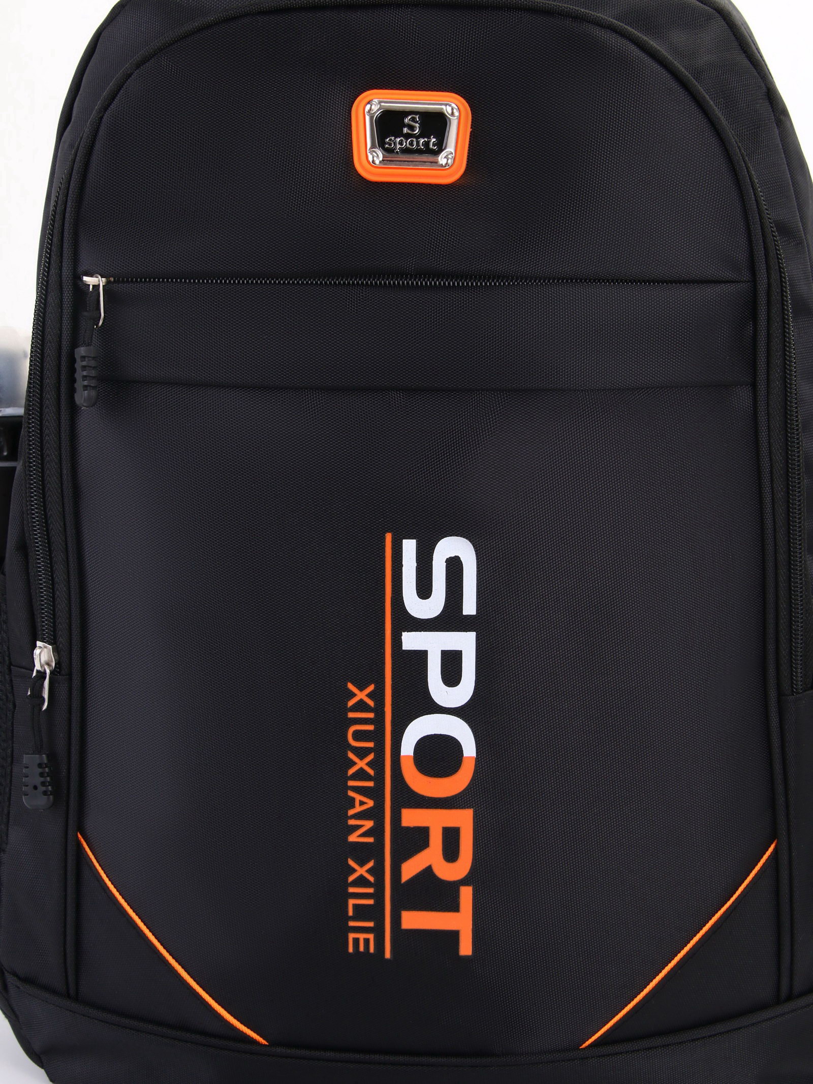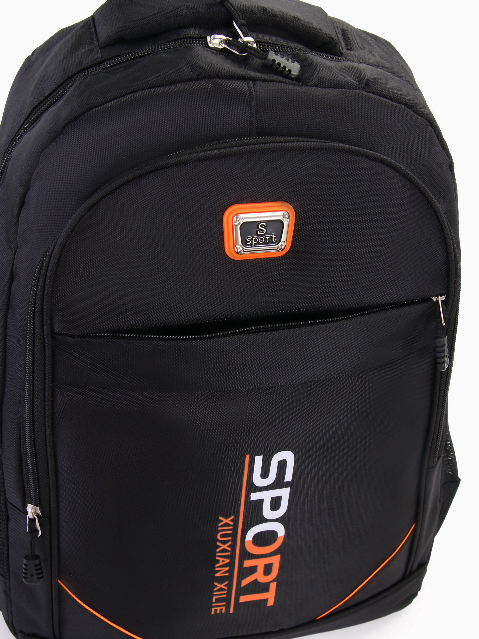 Рюкзак школьный на молнии, с карманами, размер 32x14.5x47.5 см, чёрный/оранжевый, 14.5x32x47.5 см., Китай