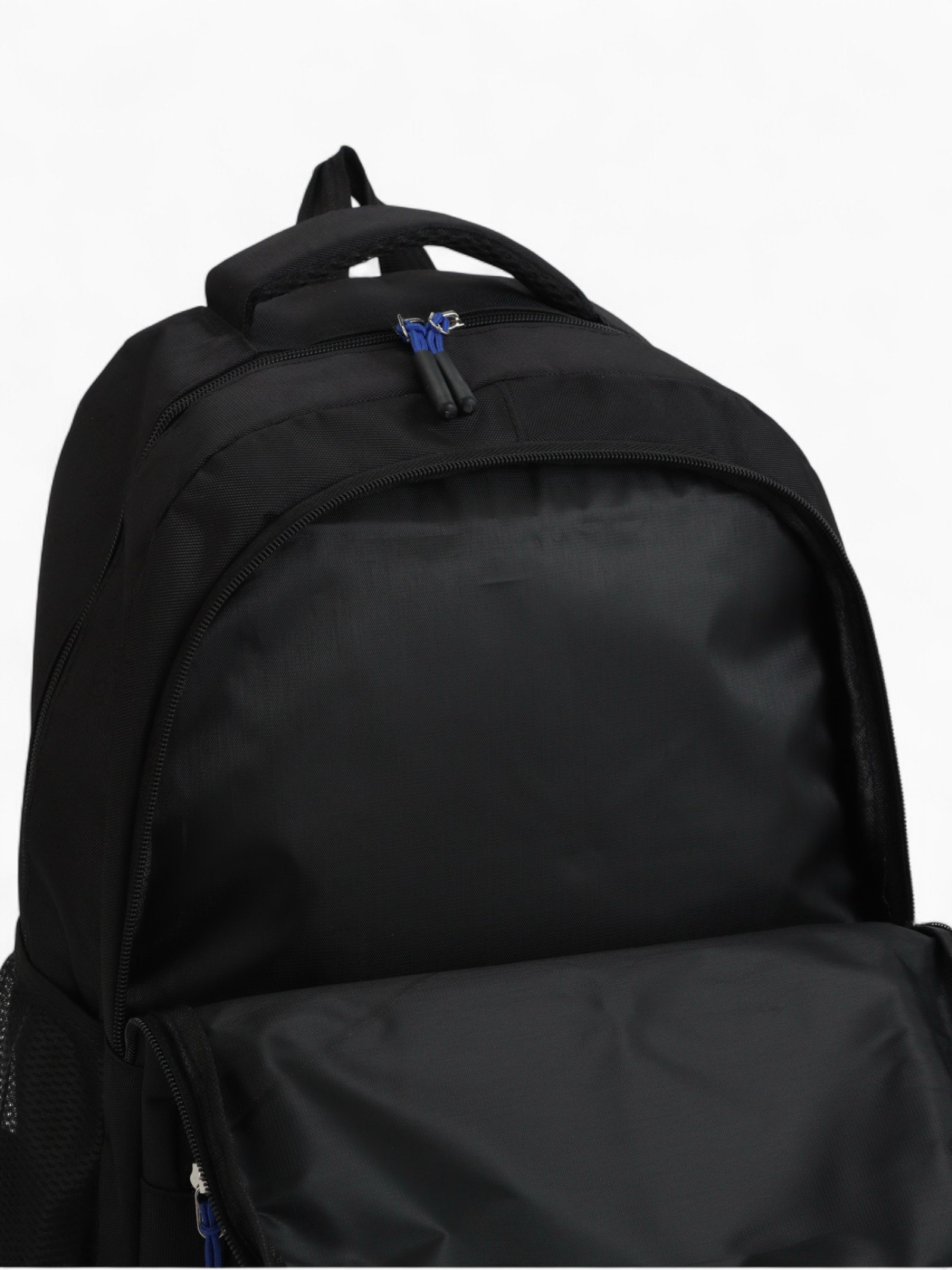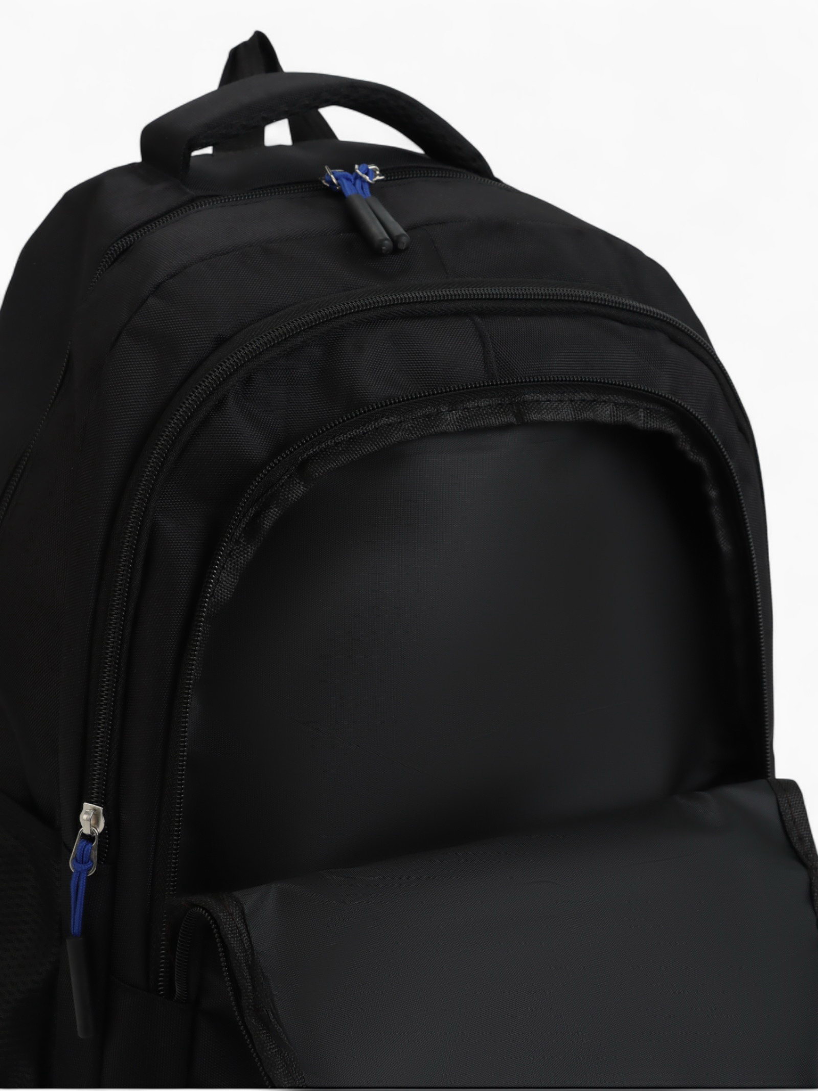 Рюкзак школьный на молнии, с карманами, размер 32x14x47 см, чёрный/синий, 14x32x47 см., Китай