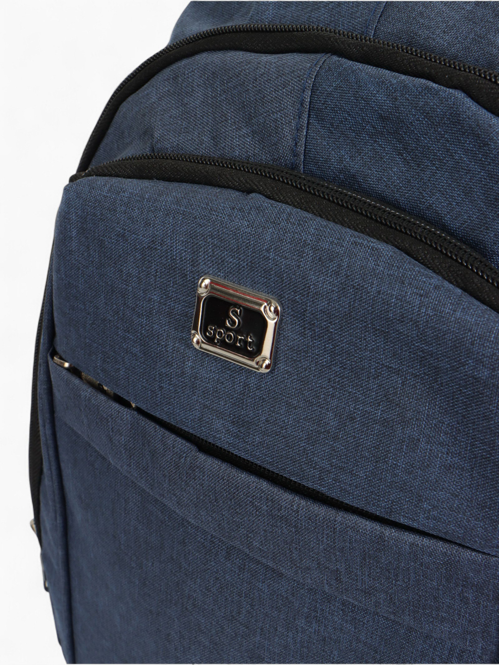 Рюкзак школьный на молнии, с карманами, синий, 14x30x46 см., Китай