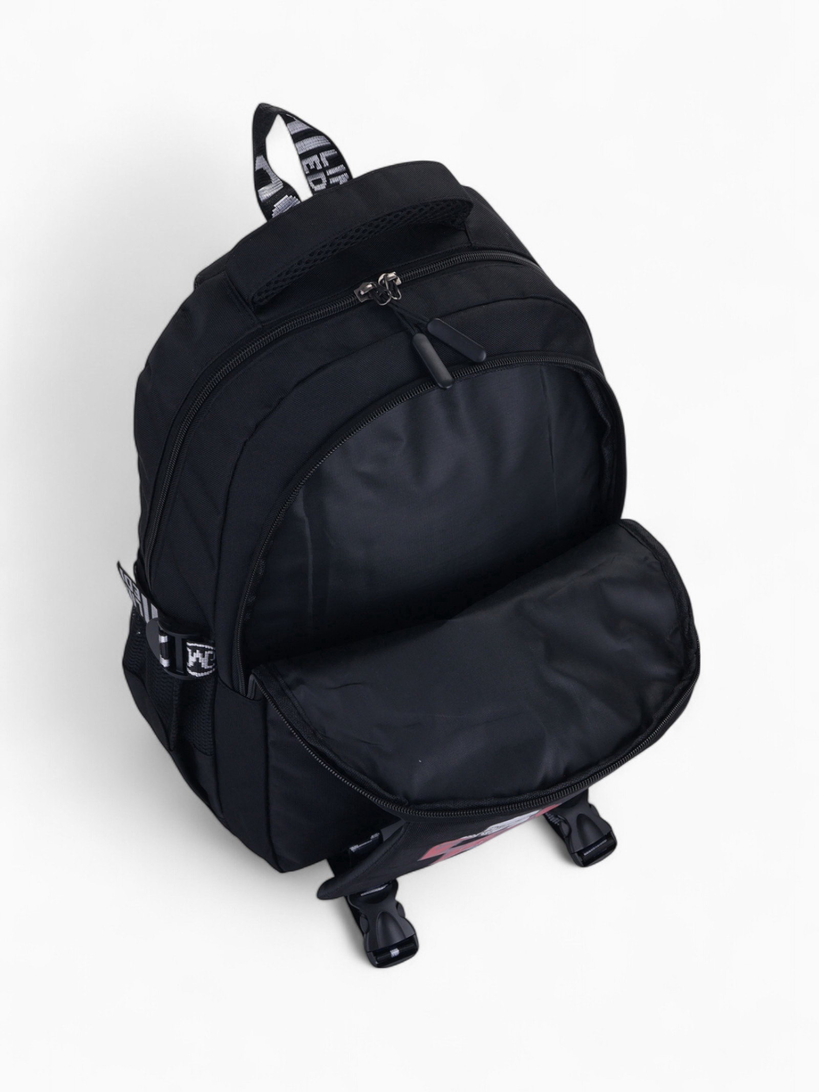 Рюкзак школьный на молнии, с карманами, принтом, размер 28x11x41 см, чёрный/красный, 11x28x41 см., Китай