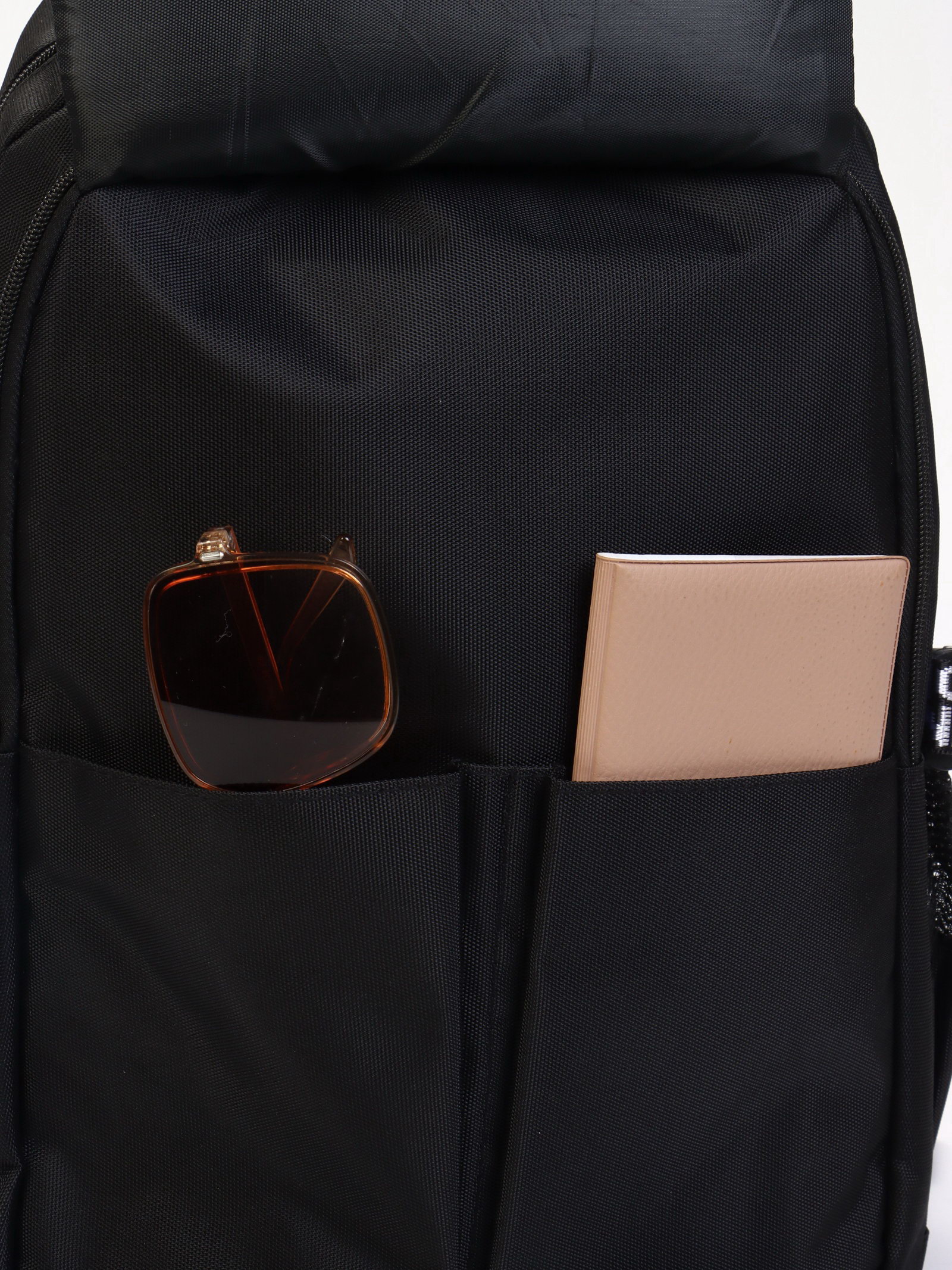 Рюкзак школьный на молнии, 5 наружных карманов, чёрный, 11x28x41 см., Китай