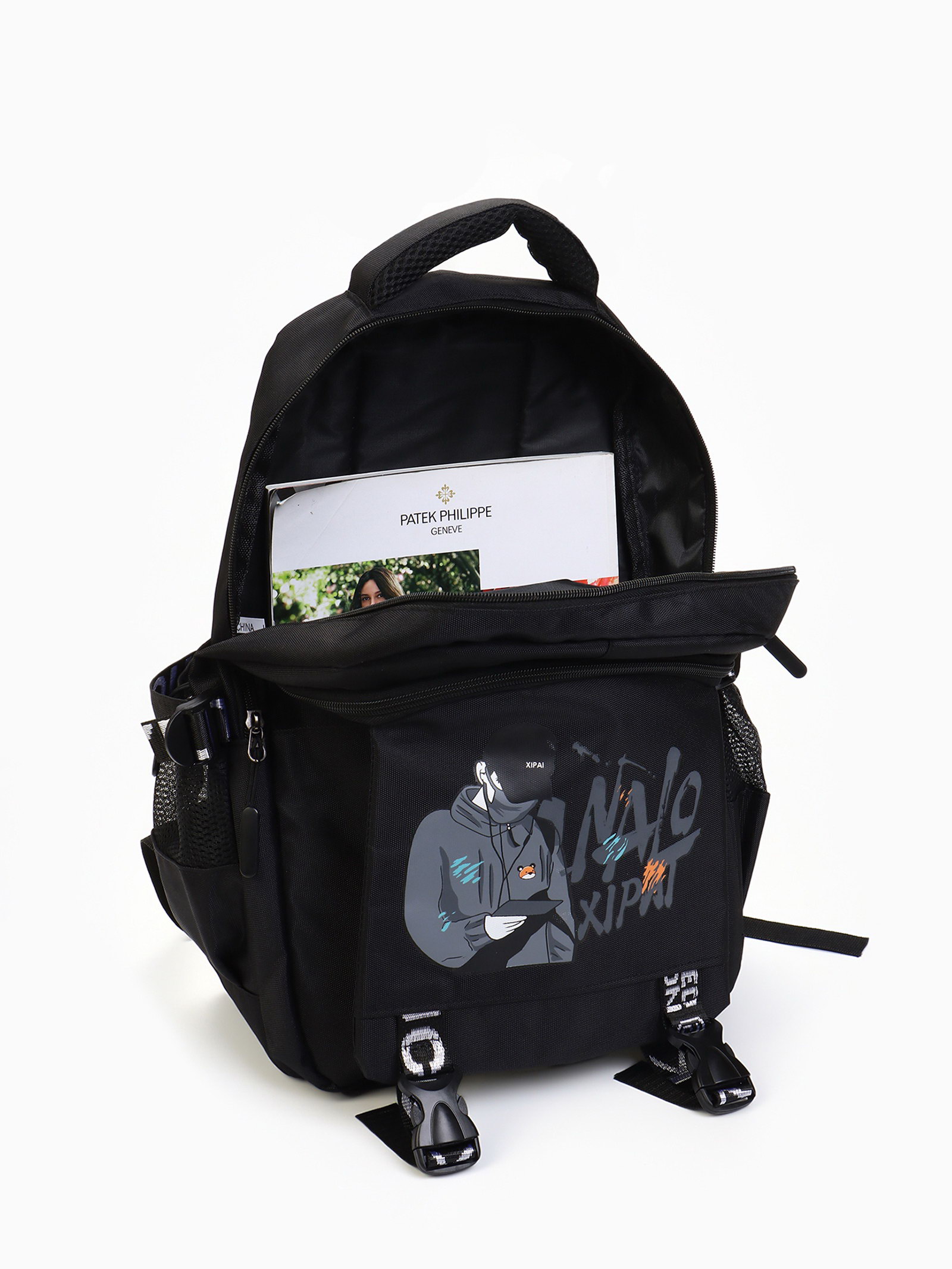 Для школьной жизни Рюкзак поддерживает активный ритм дня подростка. Отделения помогают быстро найти нужный предмет между уроками. Чёрный цвет с динамичным принтом отражает индивидуальность, оставаясь практичным решением для ежедневного использования. | ||