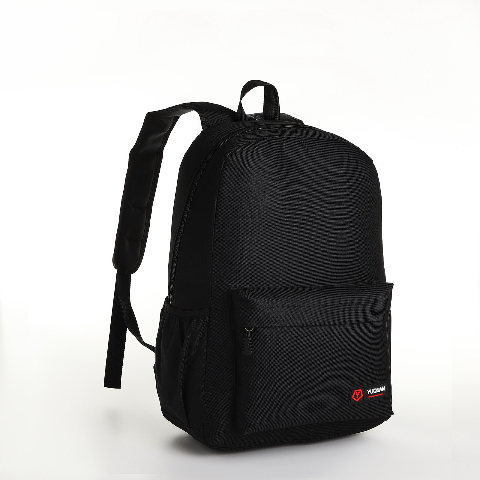 Рюкзак школьный на молнии, с карманами, однотонный, размер 28x13x41 см, чёрный, 13x28x41 см., Китай