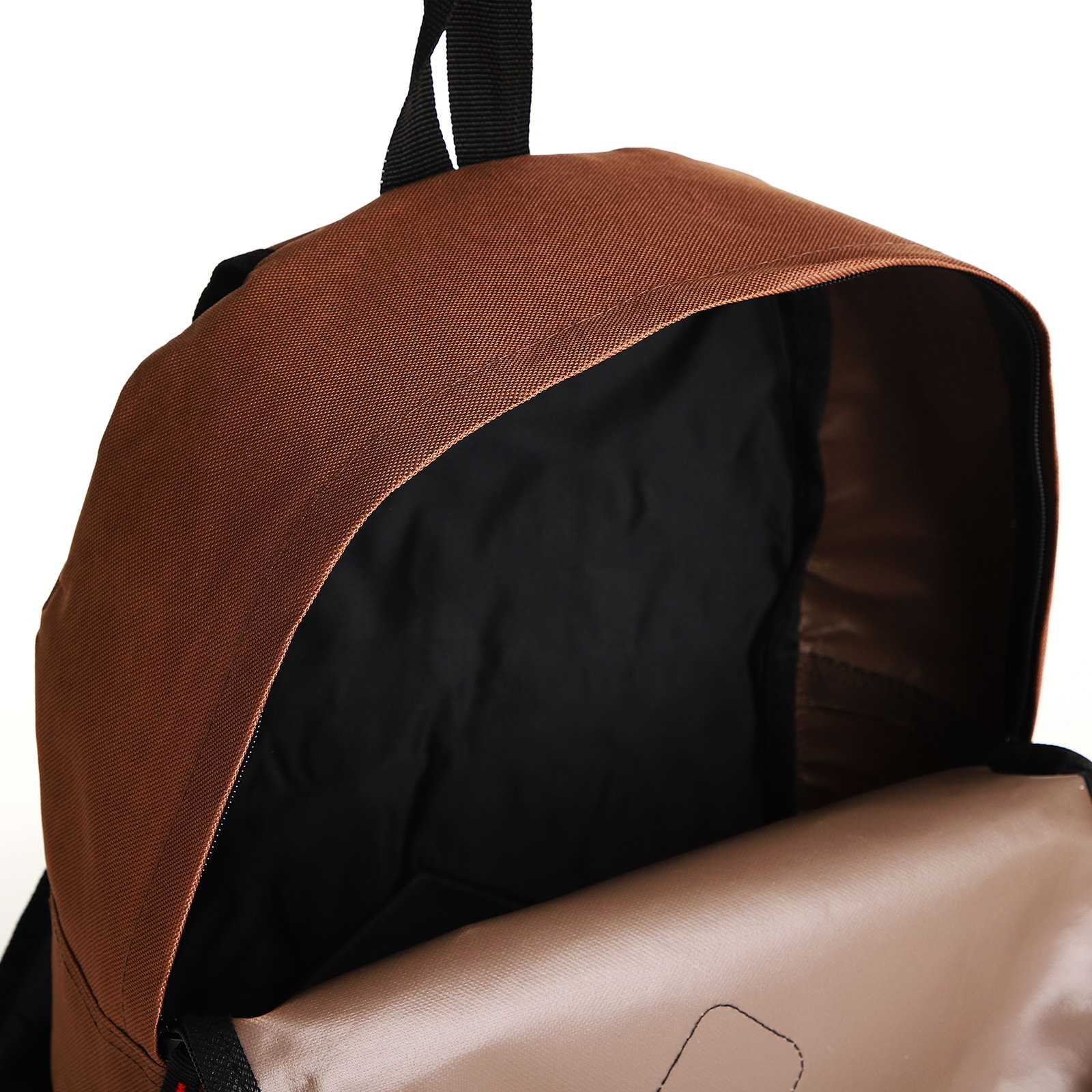 Рюкзак школьный на молнии, наружный карман, коричневый, 14.5x29x42 см., Китай