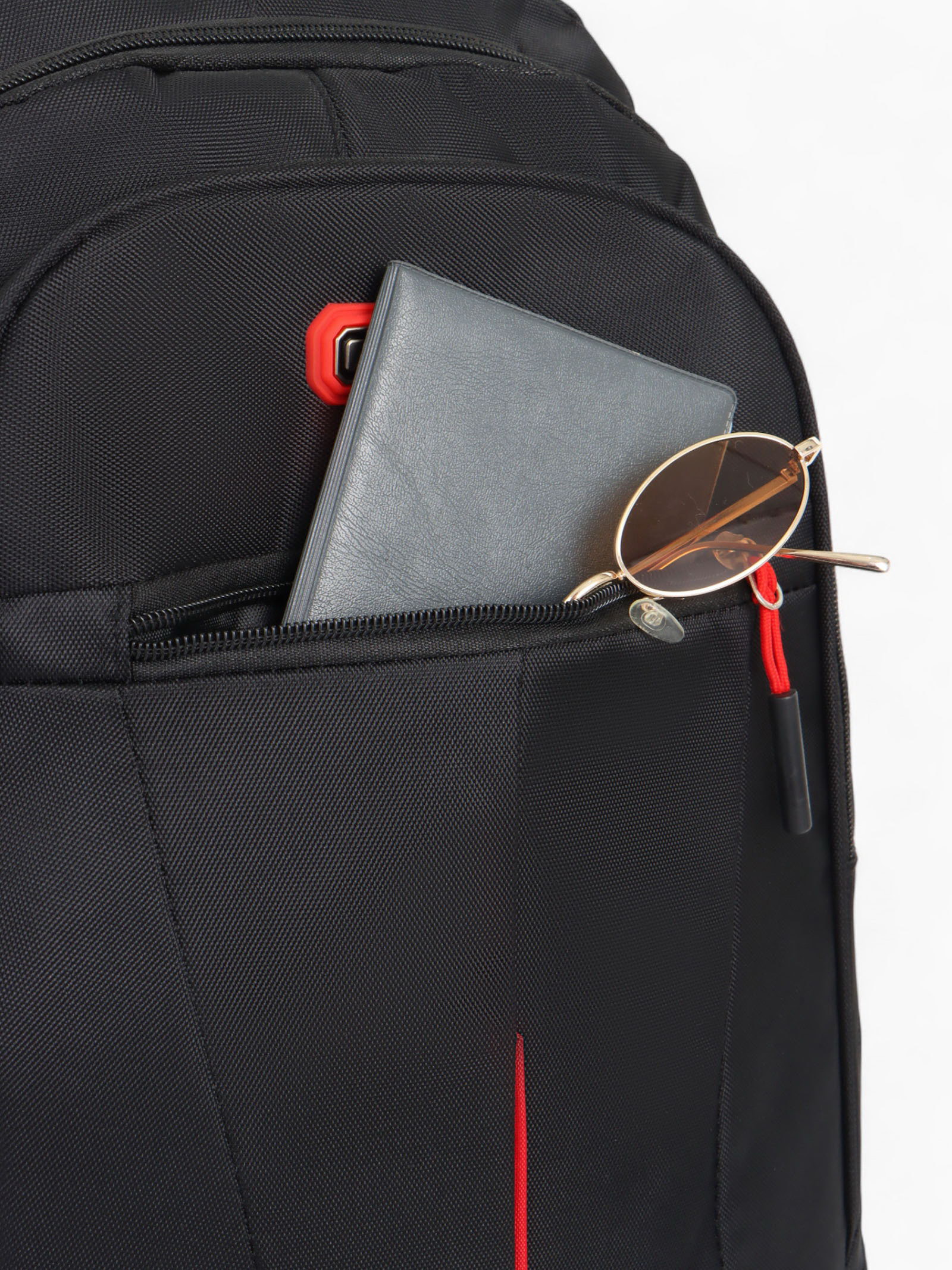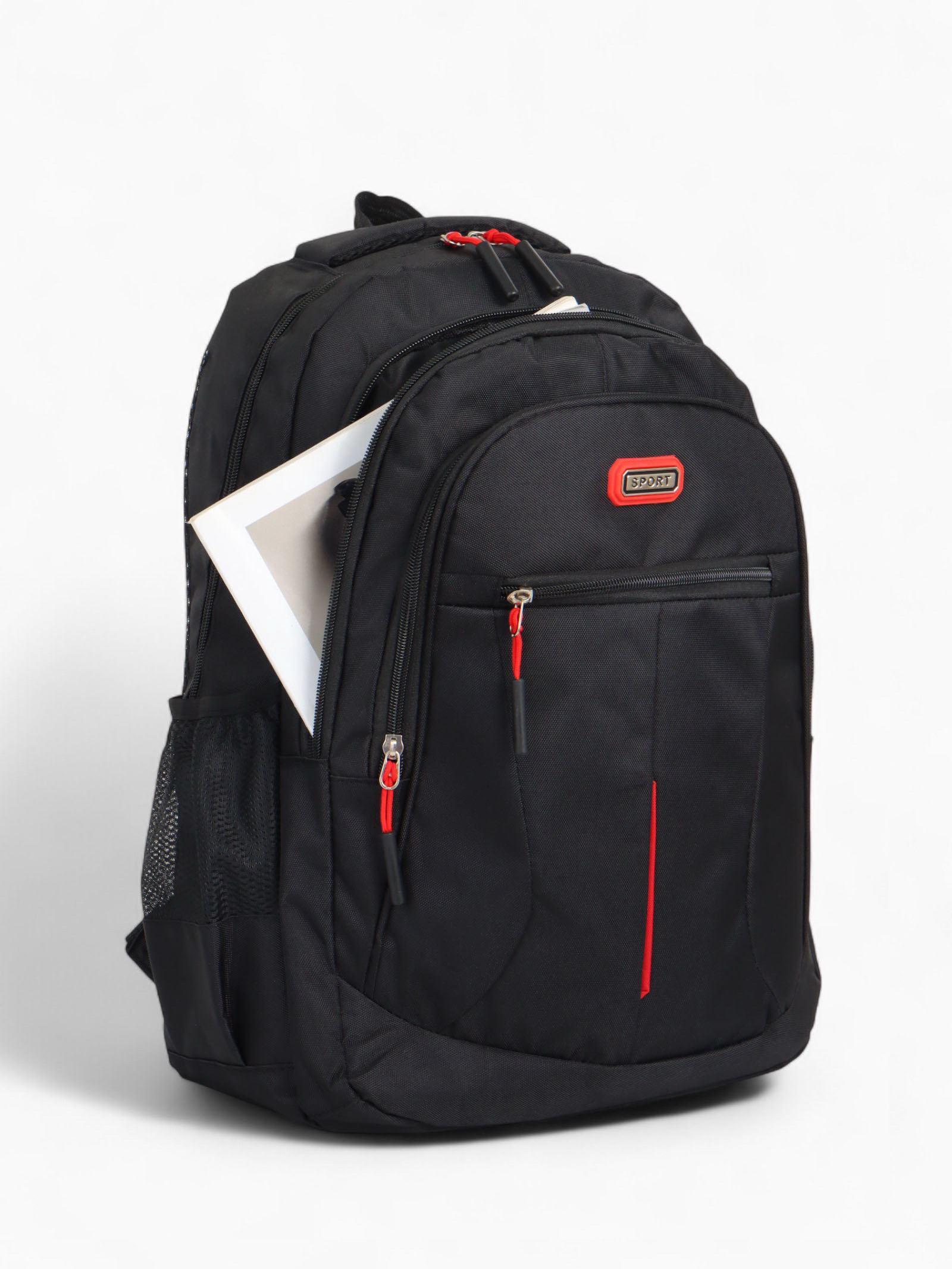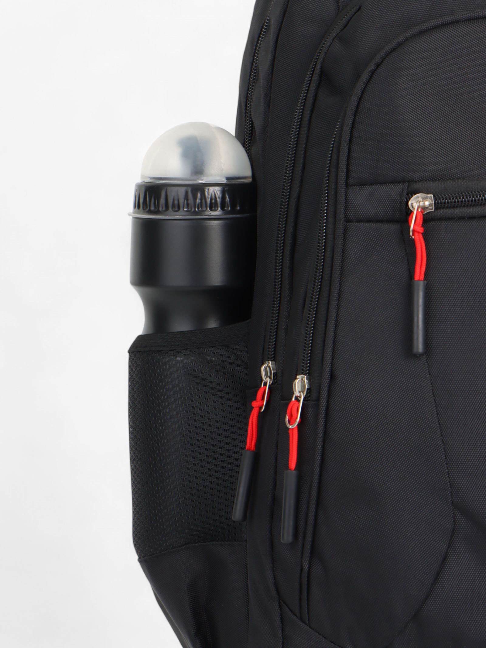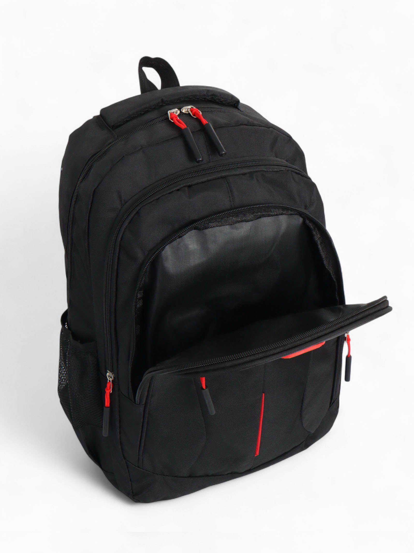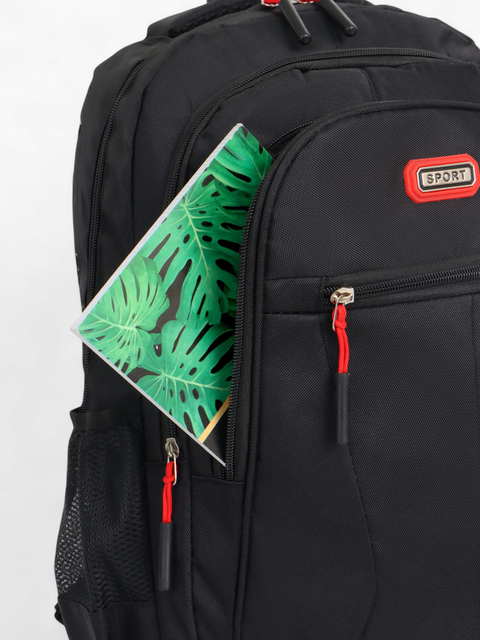 Рюкзак школьный на молнии, с карманами, размер 31x14x47 см, чёрный/красный, 14x31x47 см., Китай