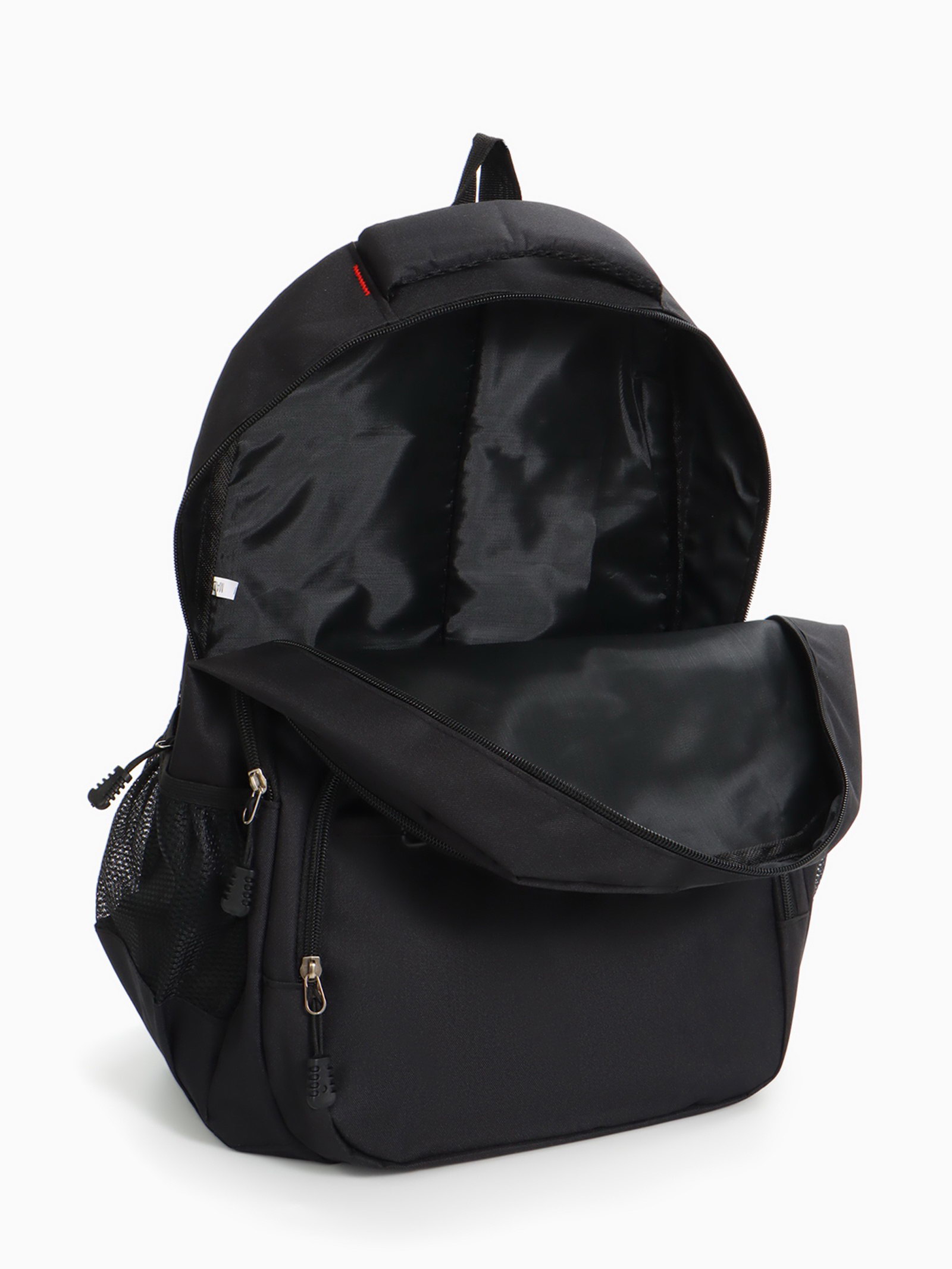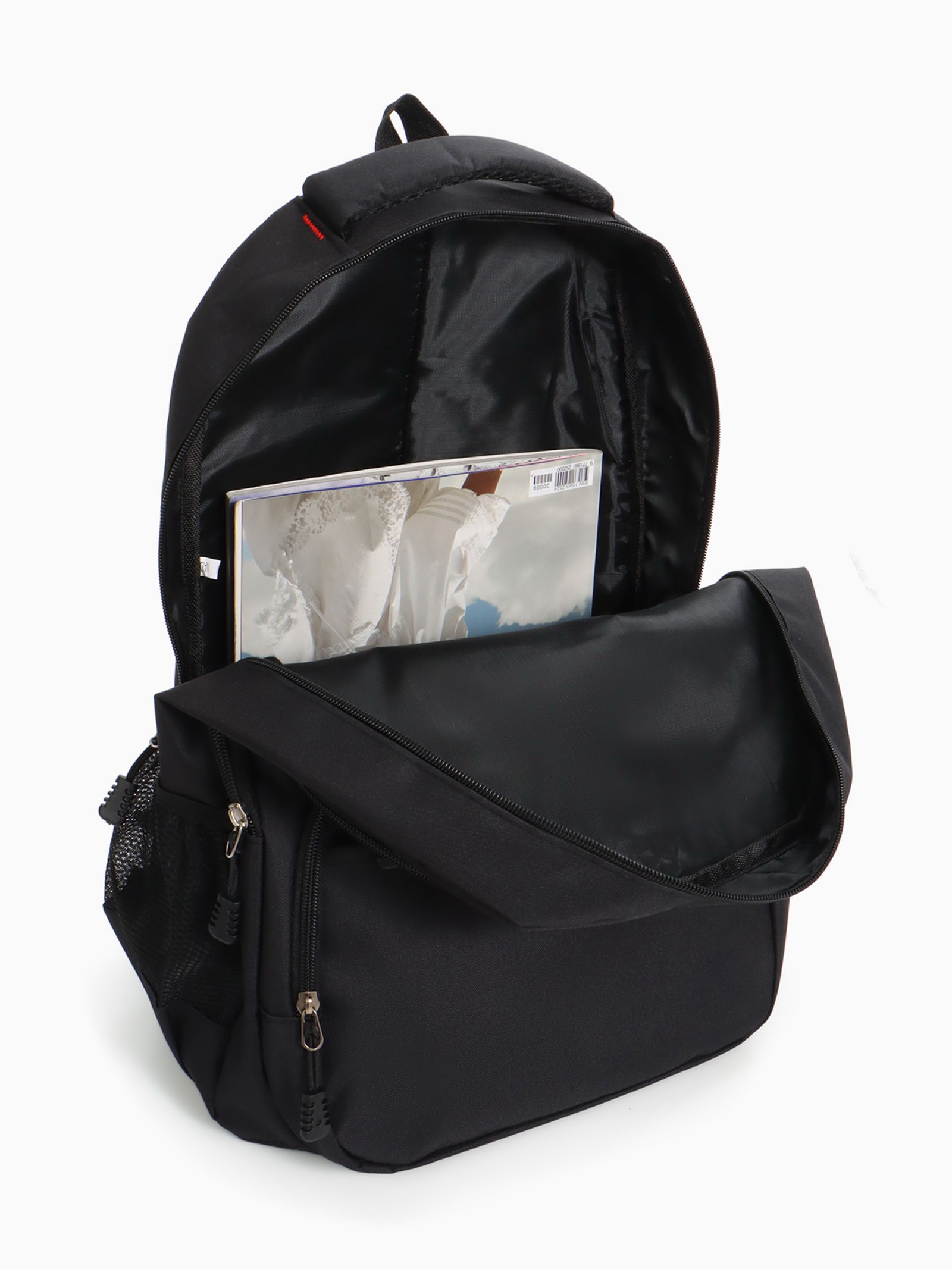 Рюкзак школьный на молнии, с карманами, однотонный, размер 30x14x46 см, чёрный, 14x30x46 см., Китай