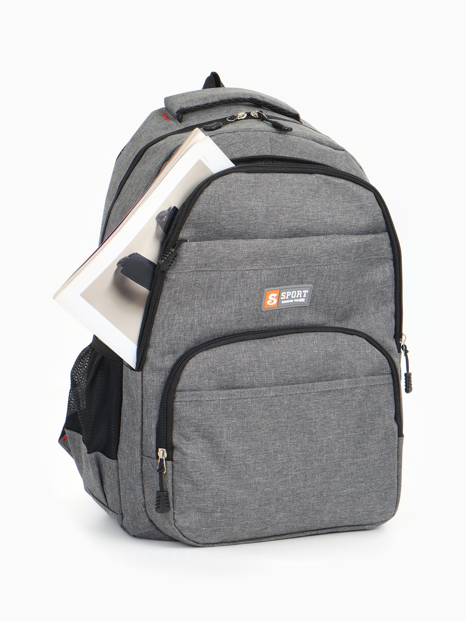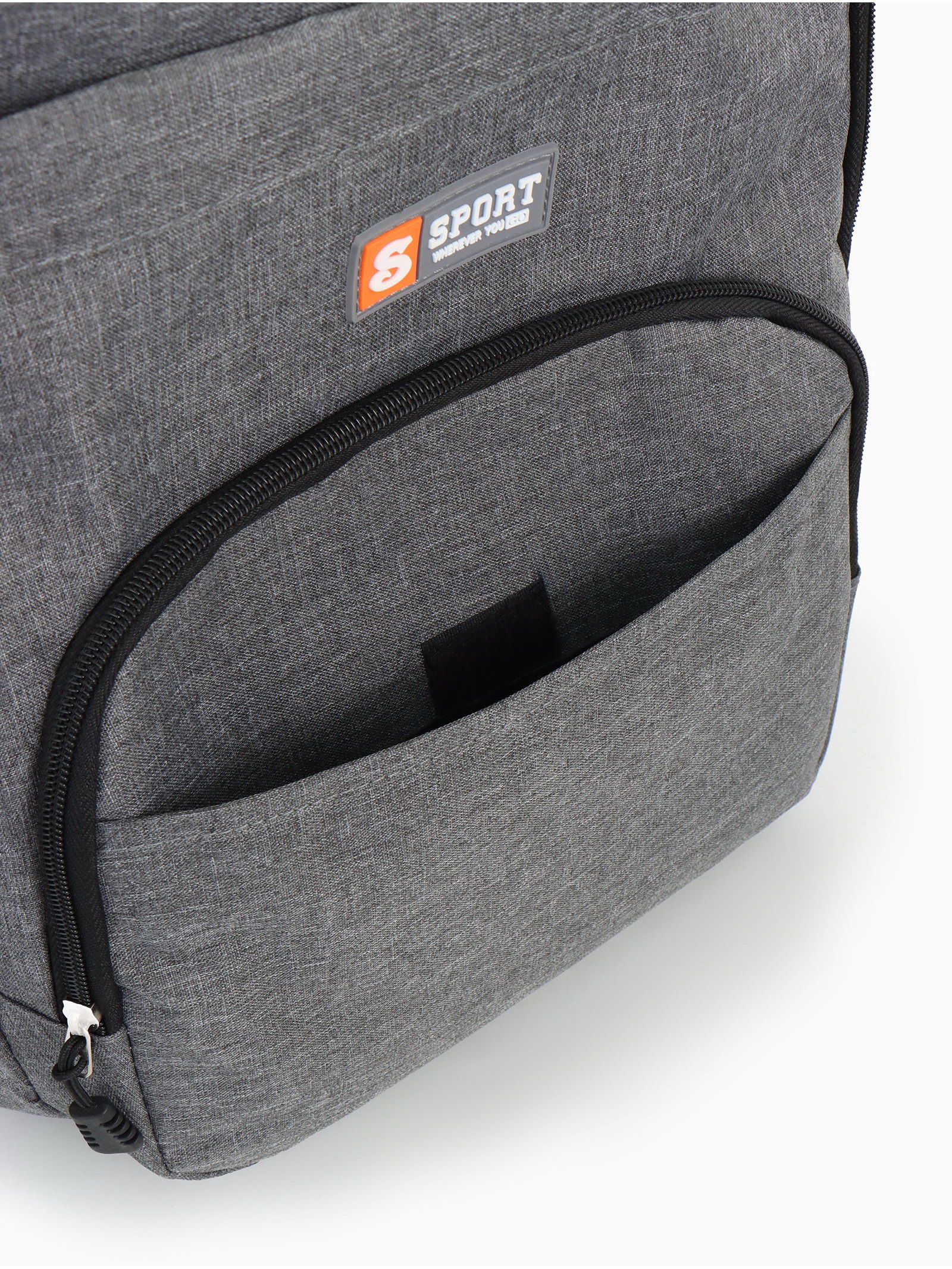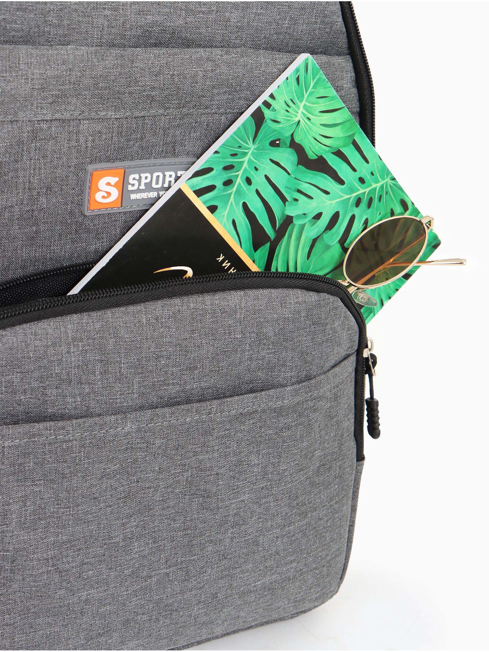 Рюкзак школьный на молнии, с карманами, серый, 14x30x46 см., Китай