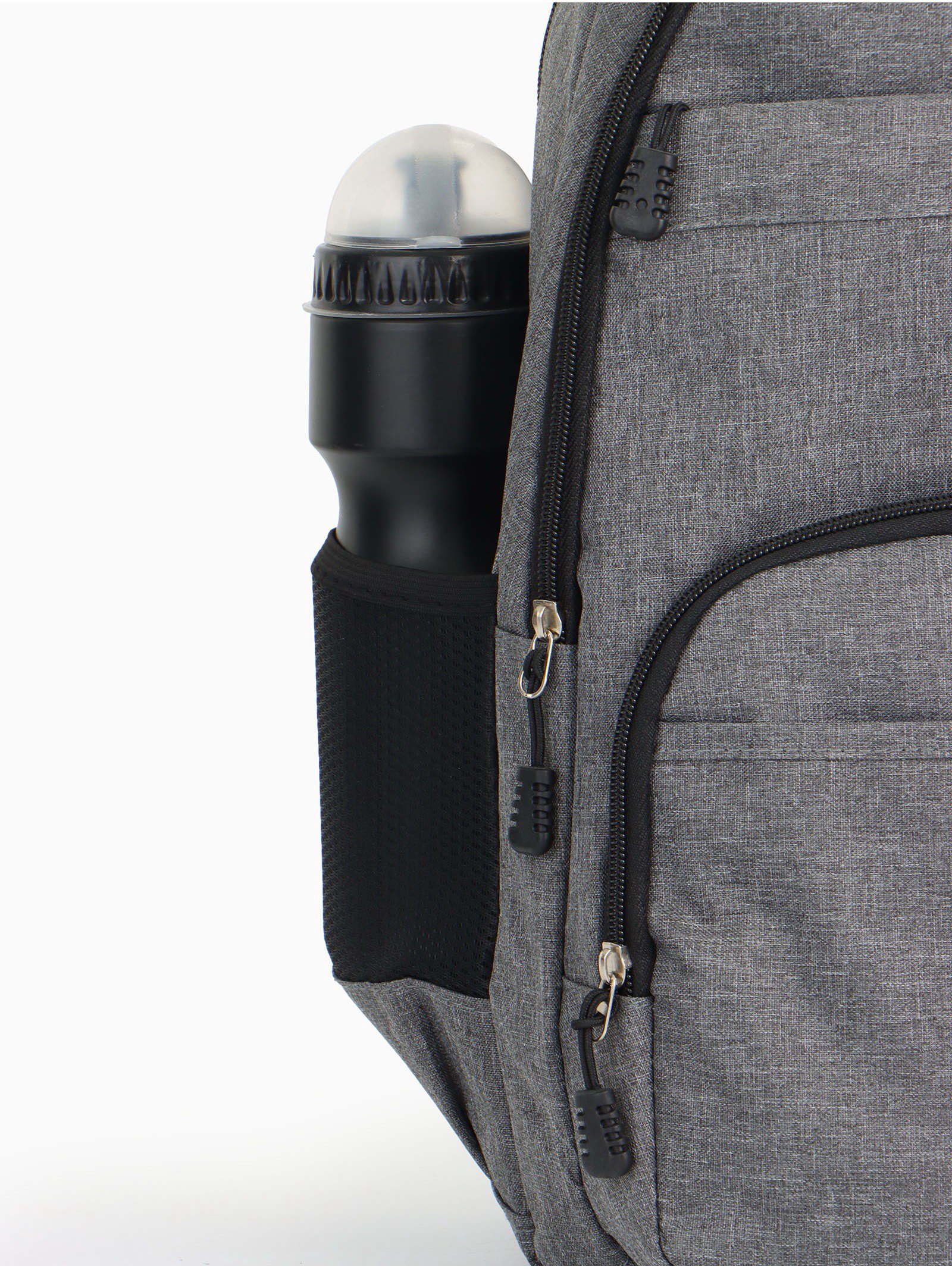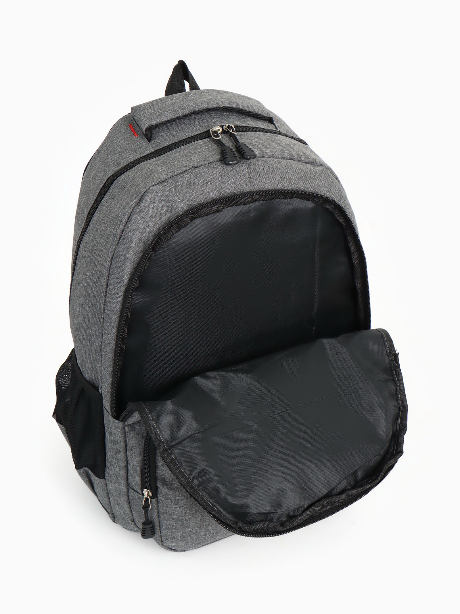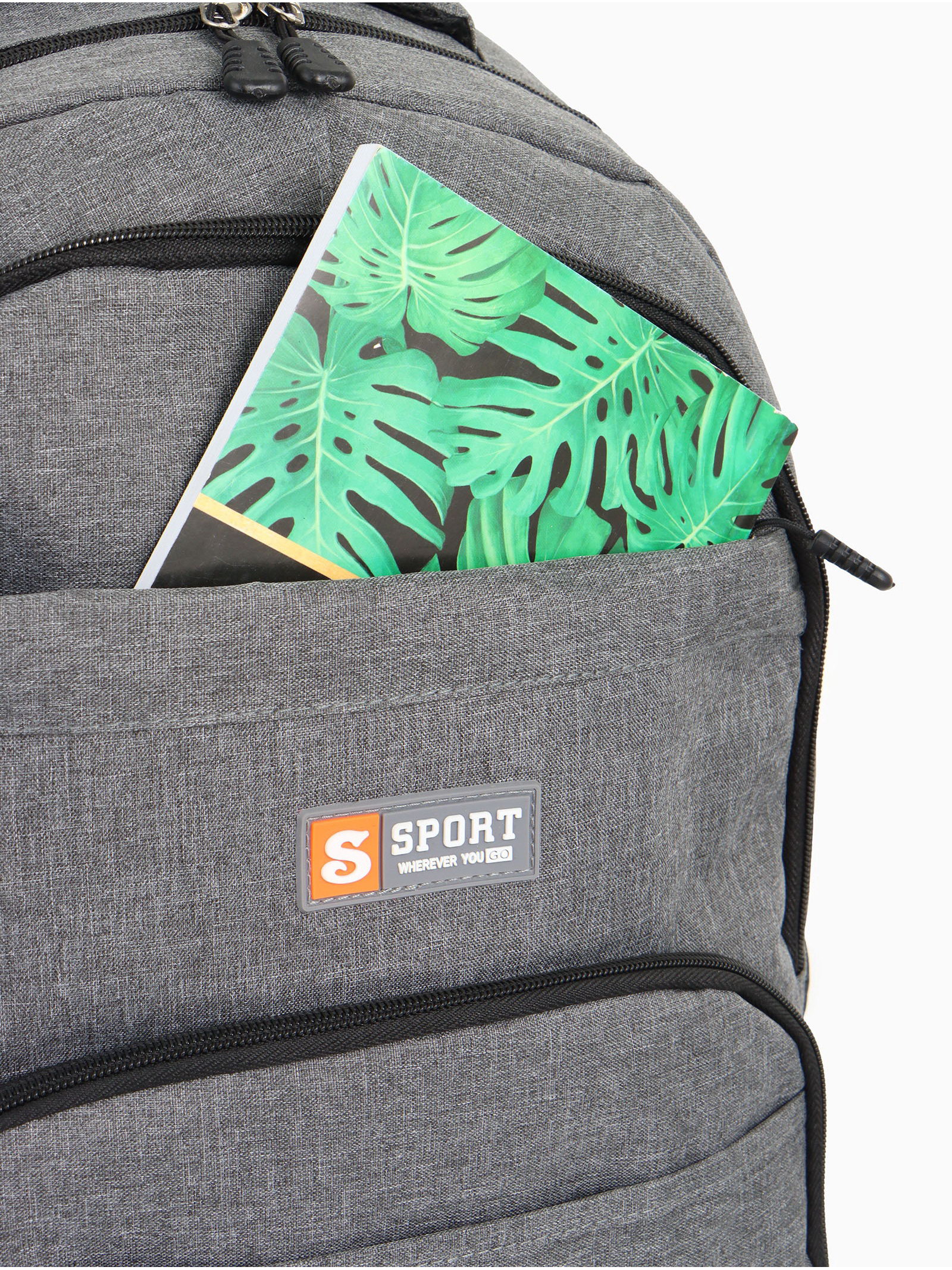 Рюкзак школьный на молнии, с карманами, серый, 14x30x46 см., Китай