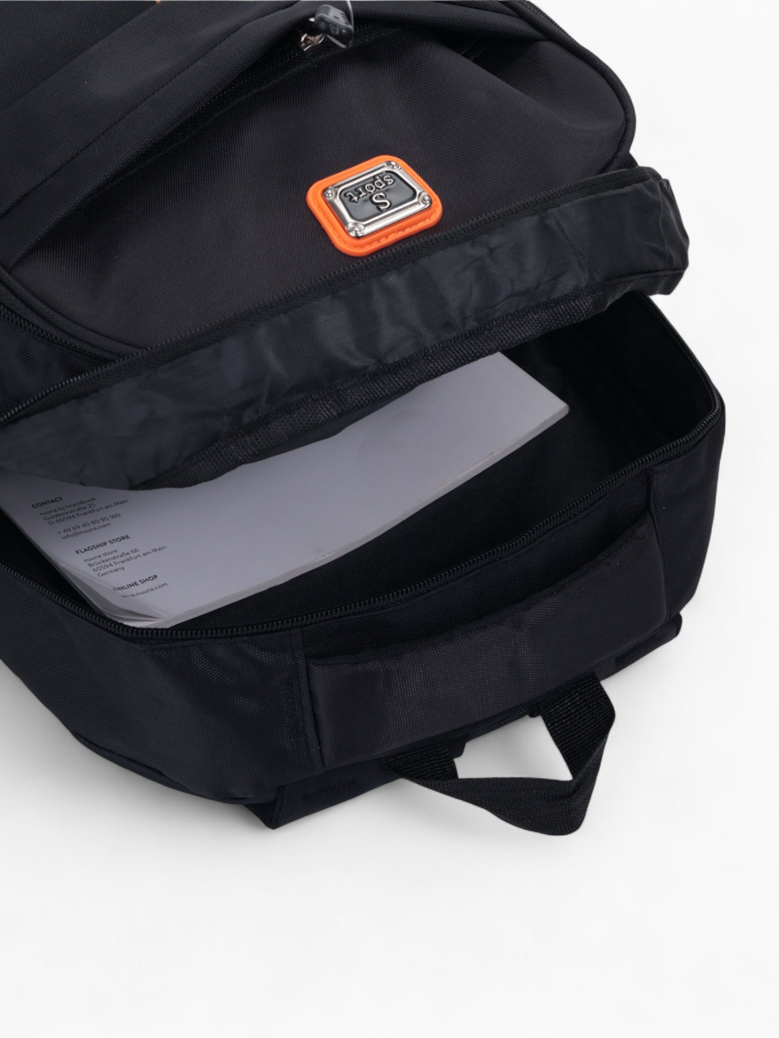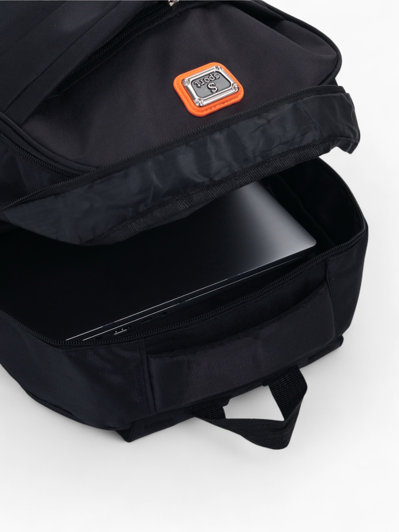 Рюкзак школьный на молнии, с карманами, однотонный, размер 31x14x47 см, чёрный/оранжевый, 14x31x47 см., Китай