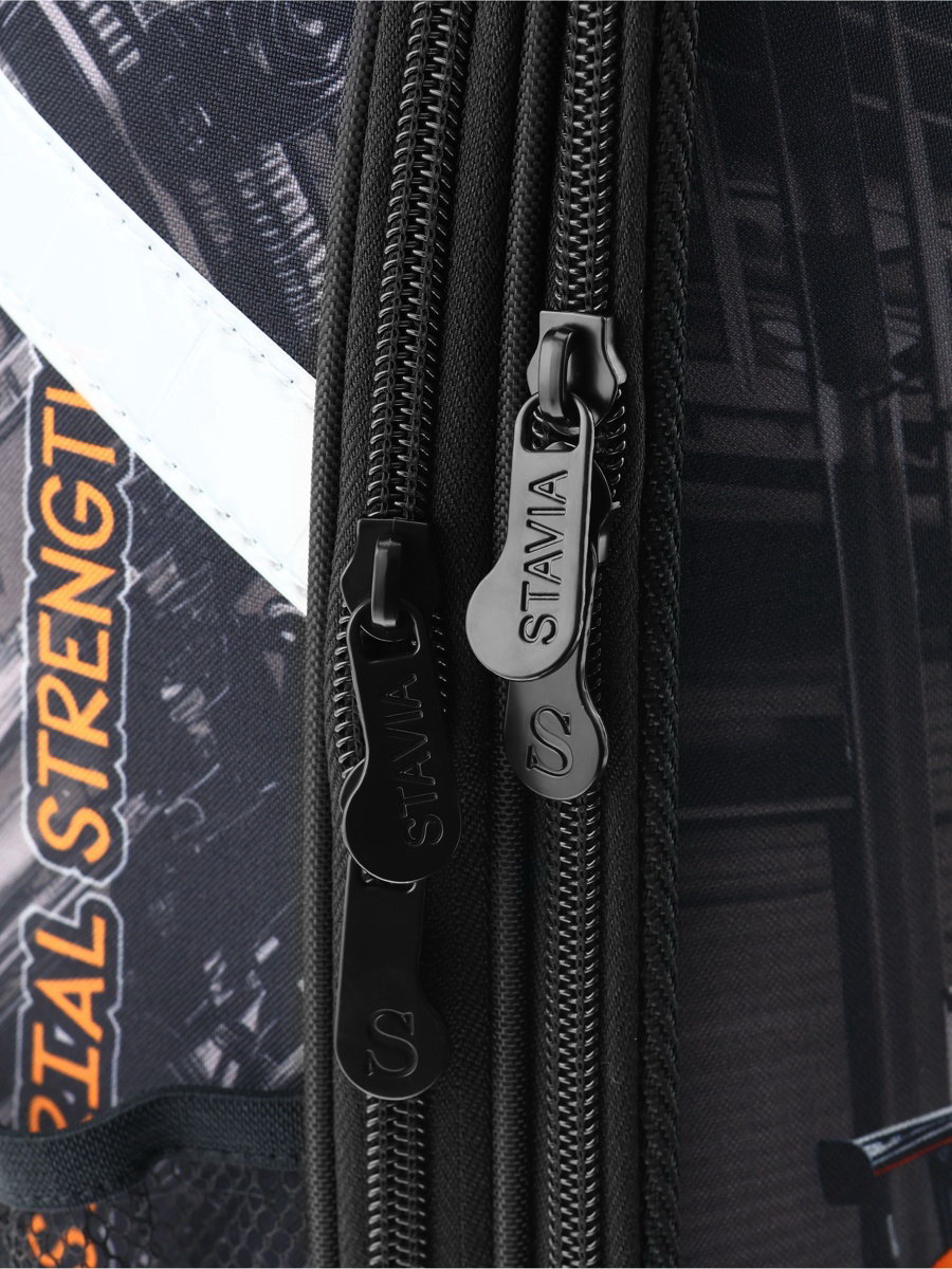 Особенности ранцев: Грудное крепление, Жёсткая эргономичная спинка Цвет: Оранжевый, Чёрный Размер упаковки: 30 x 16 x 38 см. Вид: Рюкзак Изображение: Транспорт и техника Возраст: 1-5 класс Тип: Рюкзак каркасный Для кого: Для мальчика Количество лямок: 2 Количество отделений: 2 С наполнением: Нет Температурное ограничение: Нет Штрихкод на единице товара: Да Рисунок: Да Набор: Нет Размер: До 15 литров (маленький) см Размер: До 15 литров (маленький) см tnved: 4202111000 Ранец изготовлен из формованного EVA-материала и высокопрочного непромокаемого полиэстера. Размер 30 x 38 x 16 см Вес 900 гр Прочные формованные стенки и дно ранца позволяют надежно защитить содержимое от влаги, загрязнений и предотвращают его замятие. Ранец с двумя вместительными отделениями, закрывающимися на реверсивную пластиковую молнию с металлическими "бегунками"; в первом "плавающие" перегородки для тетрадей и учебников, во втором – большой карман из сетки и карманы-органайзеры для канцелярских принадлежностей Плотная спинка с анатомическими элементами дополнительно укреплена пластиком, сверху – дышащая трехслойная сетка. Лямки-маечка плотные, мягкие. Регулируются по длине и высоте, что позволяет без труда отрегулировать их по росту ребенка. Ранец снабжен надежным нагрудным фиксатором и двумя боковыми карманами из прочной сетки. Есть удобная мягкая ручка для переноски и дополнительная петлевая ручка для размещения ранца на крюке. На дне ранца есть две пластиковые ножки В соответствии с требованиями к безопасности на дороге, ранец имеет светоотражающие элементы на лямках и корпусе. Приятный бонус колечко-подвес для брелока. Брелок также прилагается Брелок может отличаться от представленного на фото | ||