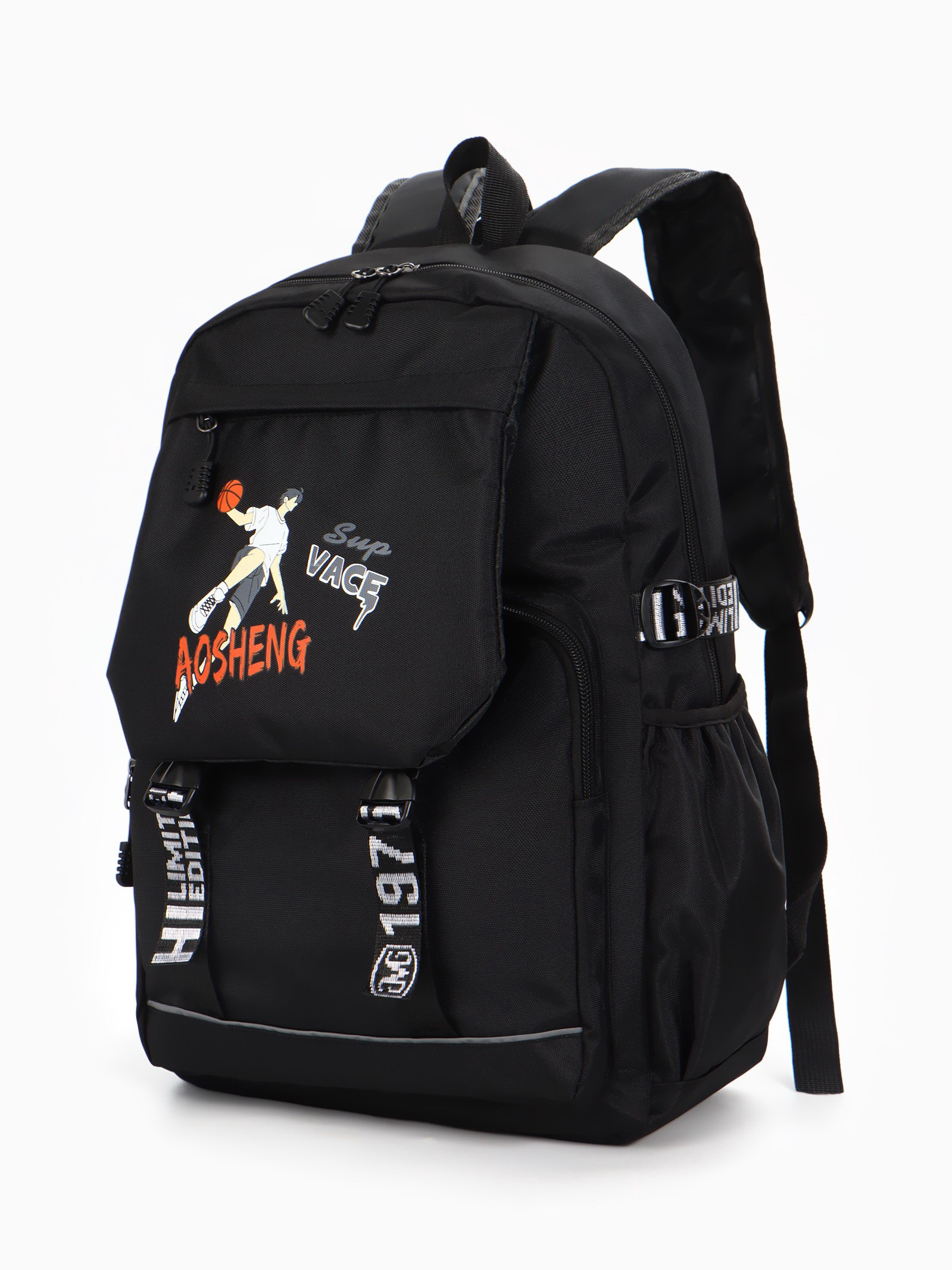 Рюкзак школьный, для мальчика, с рисунком, 1 отделение, 5 карманов, 31x14x45 см, чёрный, 14x31x45 см., Китай