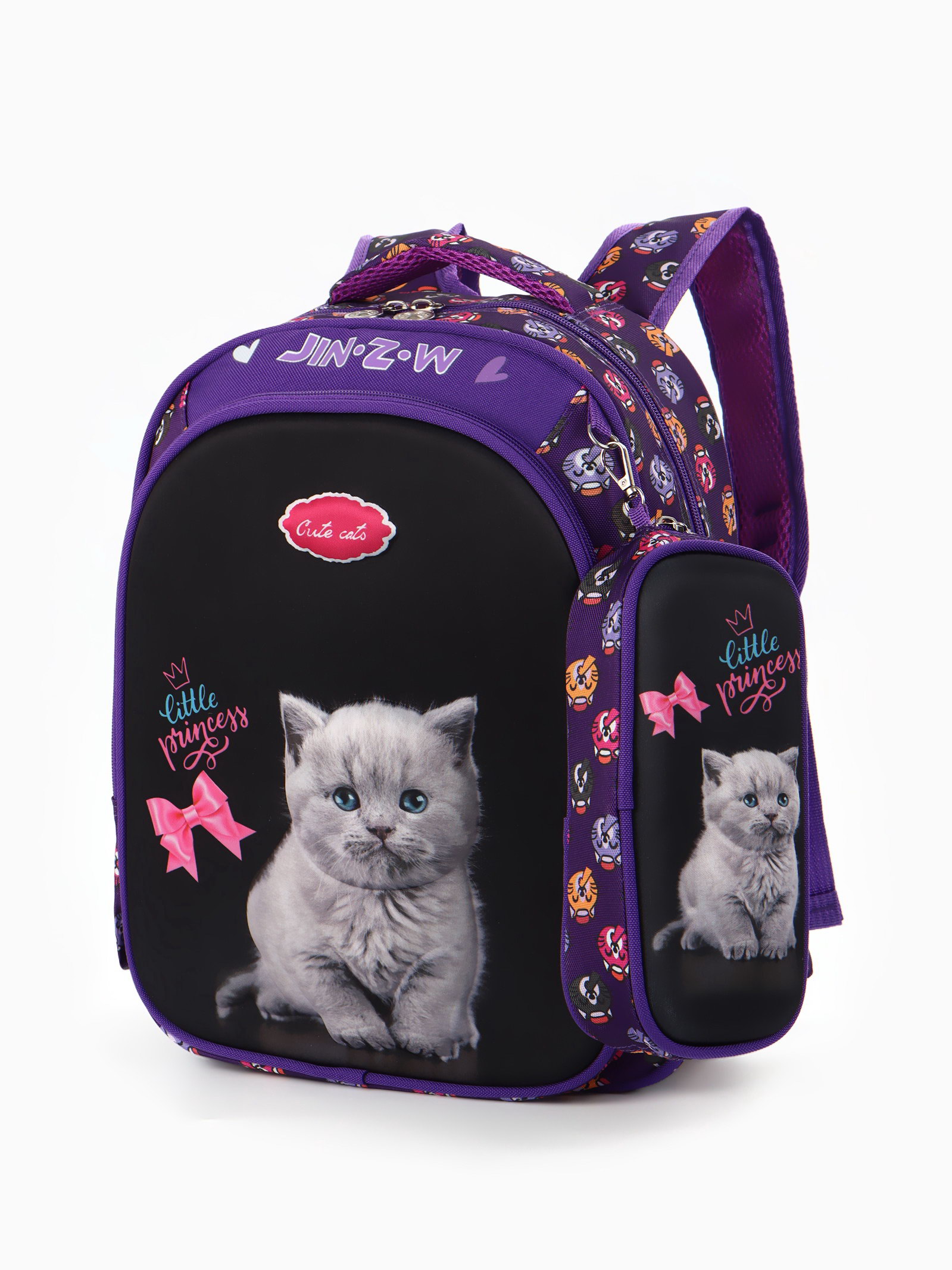 Размер упаковки: 30 x 4 x 37 см. tnved: 4202929200 Изображение: Кот/Кошка Возраст: 1-5 класс Тип: Рюкзак каркасный Набор: Да Особенности ранцев: Жёсткая эргономичная спинка Цвет: Разноцветный Размер: До 15 литров (маленький) см Для кого: Для девочки Количество лямок: 2 Рисунок: Да Количество отделений: 2 Этот школьный рюкзак для девочек создан, чтобы стать верным спутником с первого по пятый класс. Жёсткая эргономичная спинка повторяет естественный изгиб позвоночника, обеспечивая комфорт даже при полной загрузке. Два основных отделения и два наружных кармана помогают быстро организовать учебники, тетради и мелочи. В комплекте идёт стильный пенал, что делает набор готовым решением для учёбы. Особенности