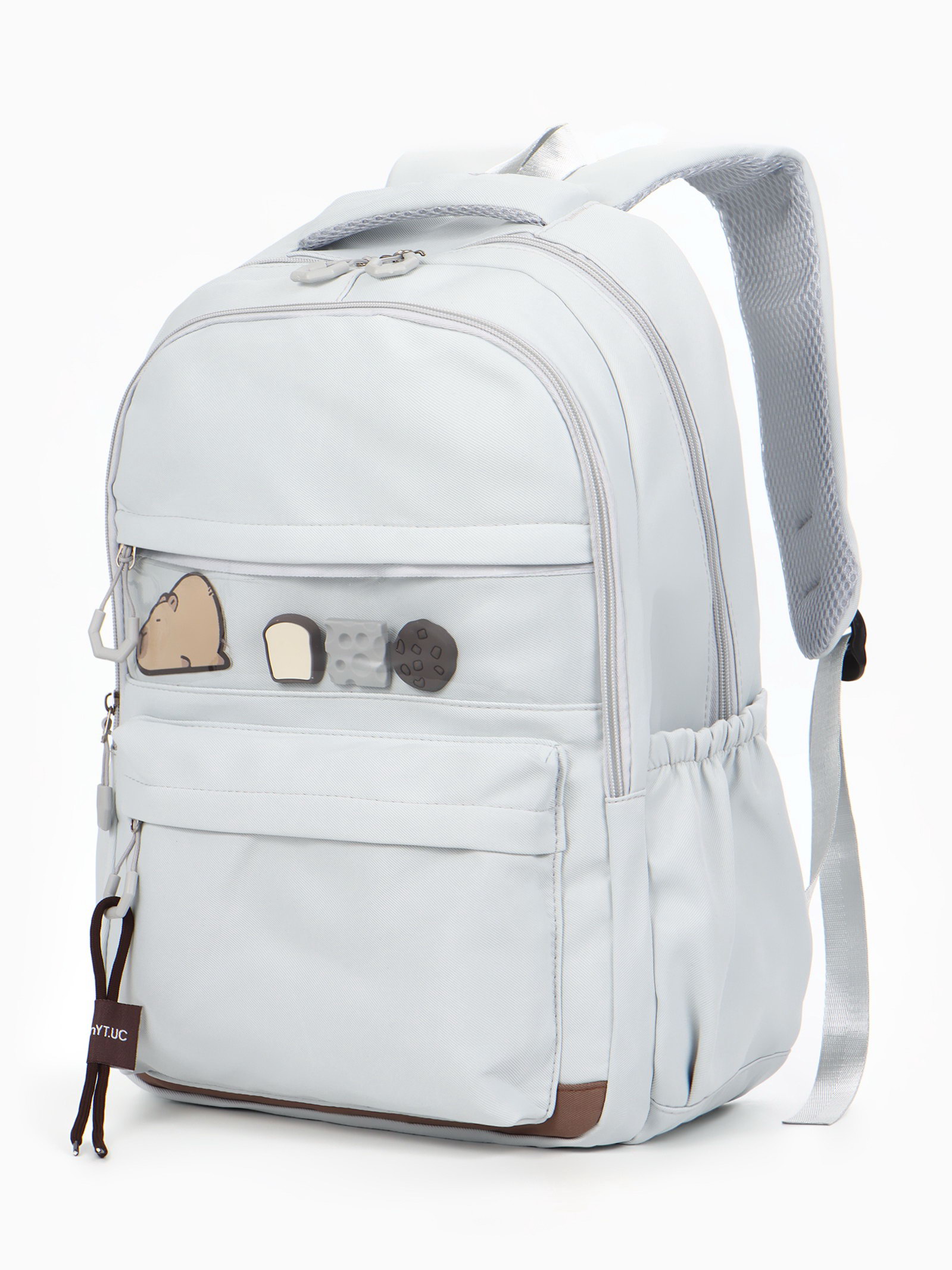 Рюкзак школьный "Капибара", однотонный, 2 отделения, 4 кармана, 31x13.5x45 см, светло-голубой, 13.5x31x45 см., Китай