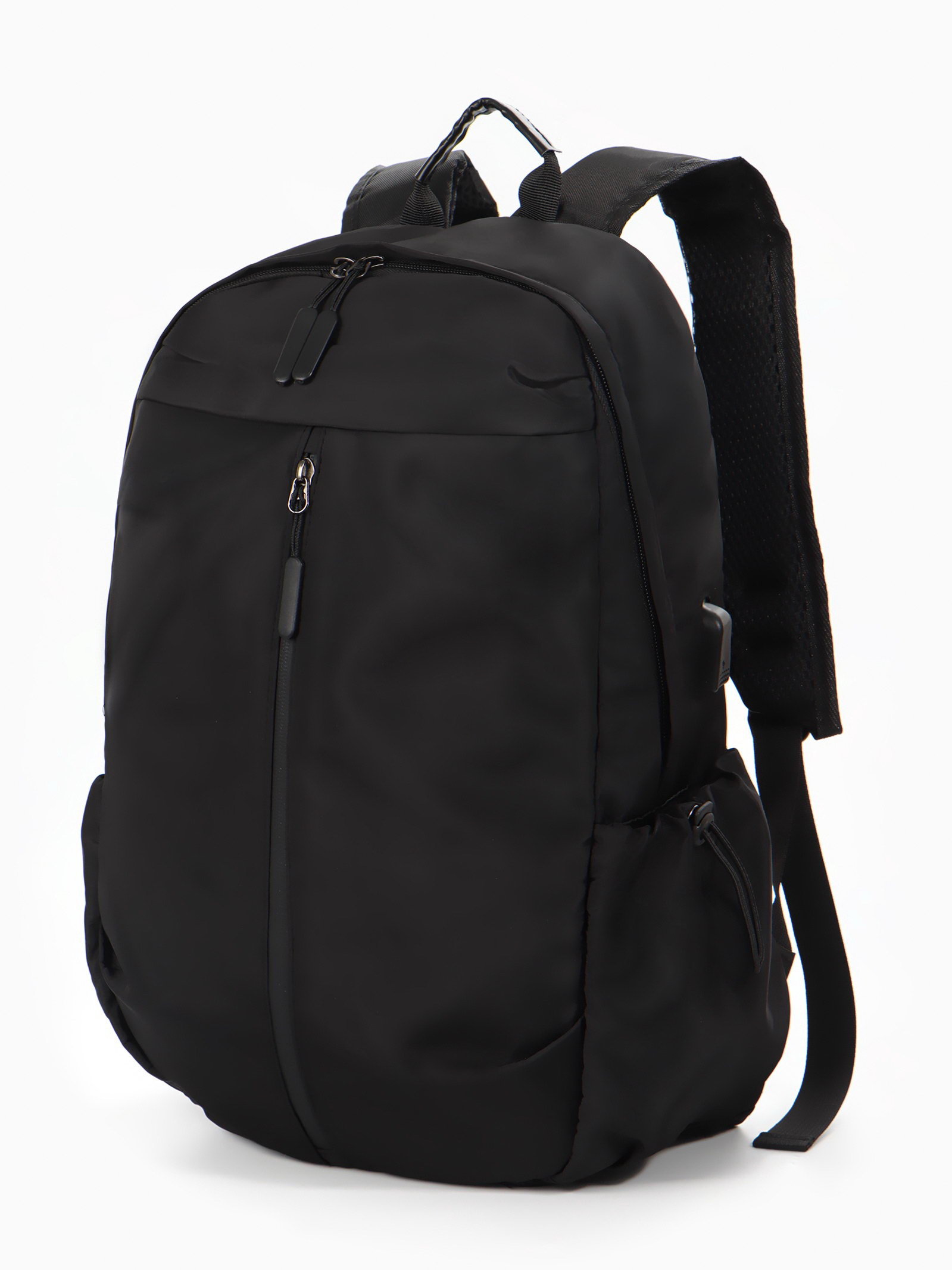 Рюкзак школьный, однотонный, USB, 1 отделение, 3 кармана, 30x15x45 см, чёрный, 15x30x45 см., Китай