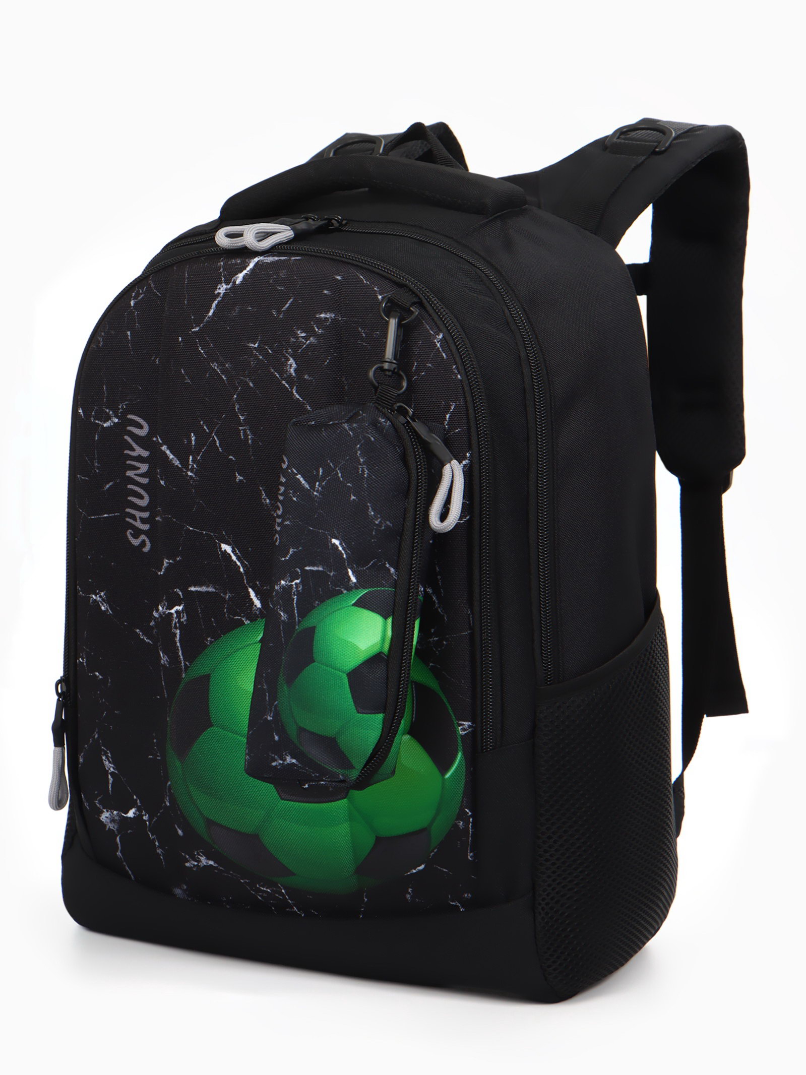 Рюкзак школьный для мальчика "Мяч", с пеналом, эргономичная спинка, 32x17x41 см, чёрный, 17x32x41 см., Китай