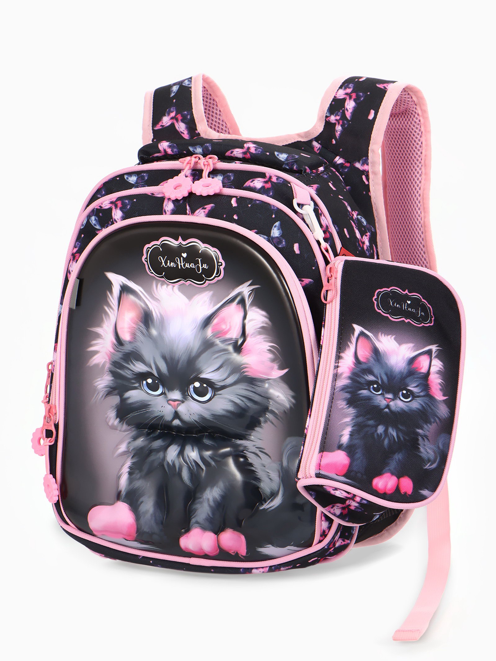 Рюкзак школьный "Кошка", для девочки, эргономичная спинка, с пеналом, 29x14x38 см, разноцветный, 14x29x38 см., Китай