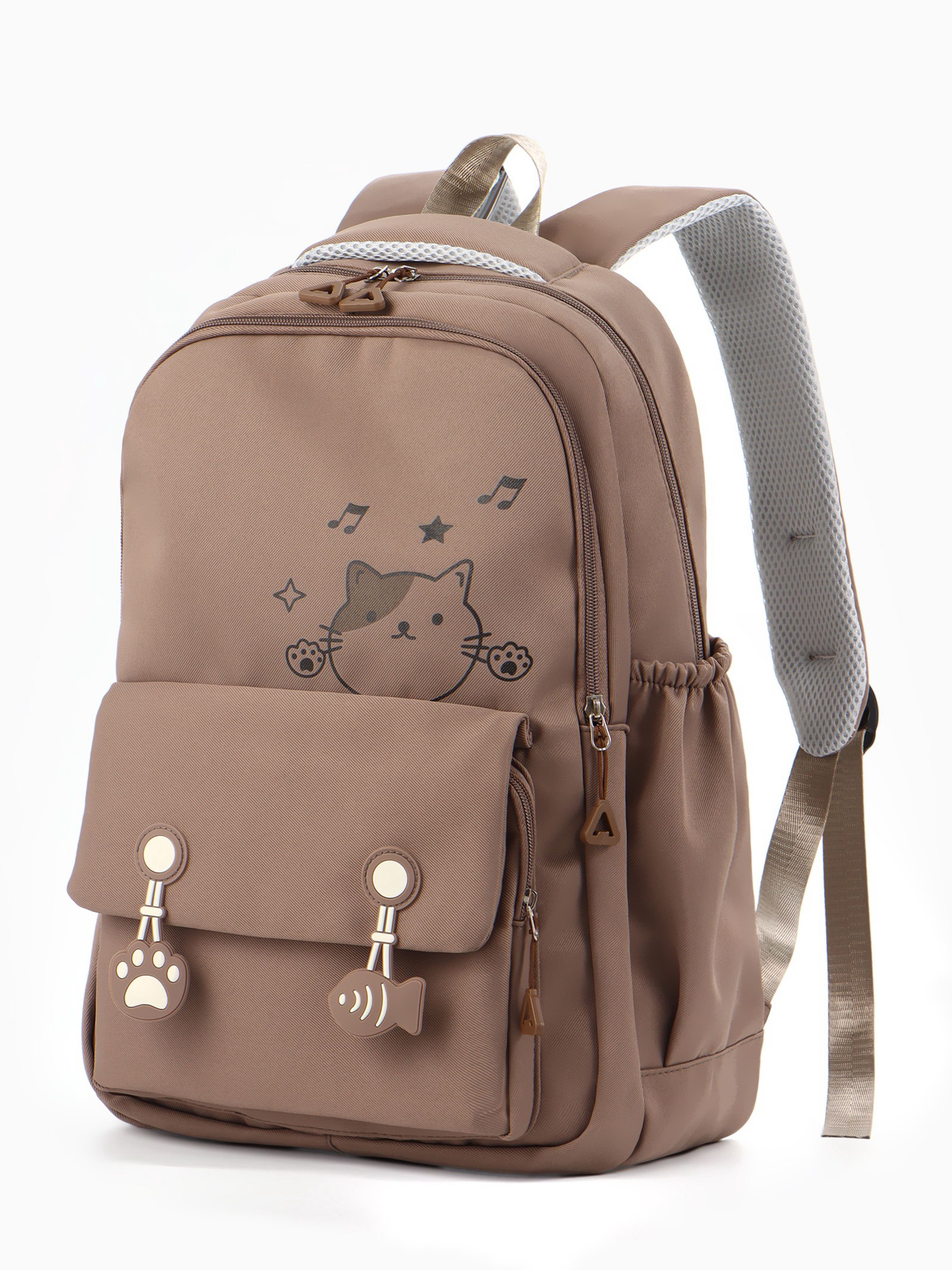 Рюкзак школьный "Котик", 3 кармана, 2 отделения, 29x14x44 см, бежевый, 14x29x44 см., Китай