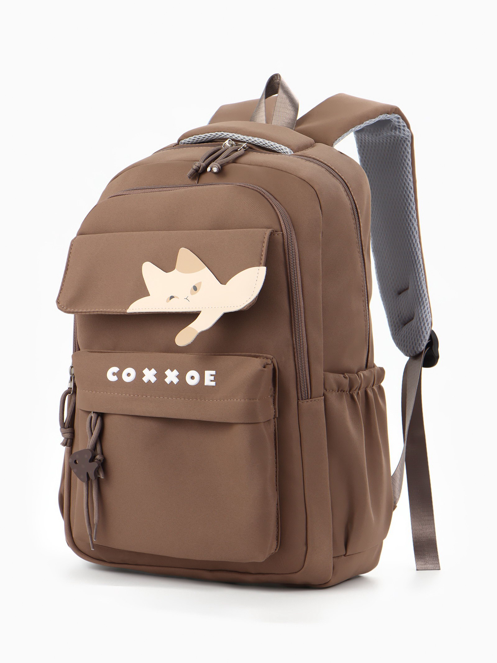 Рюкзак школьный, "Уставший кот", 5 карманов, 2 отделения, 31x13.5x45 см, коричневый, 13.5x31x45 см., Китай