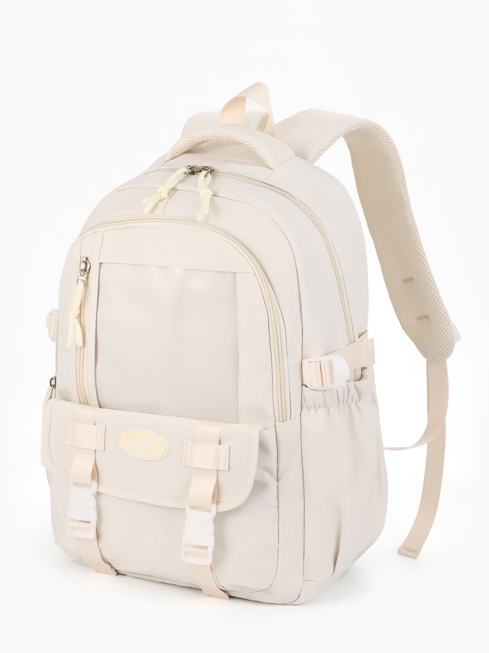 Рюкзак школьный, однотонный, 2 отделения, 5 карманов, 30x13x44 см, белый, 13x30x44 см., Китай