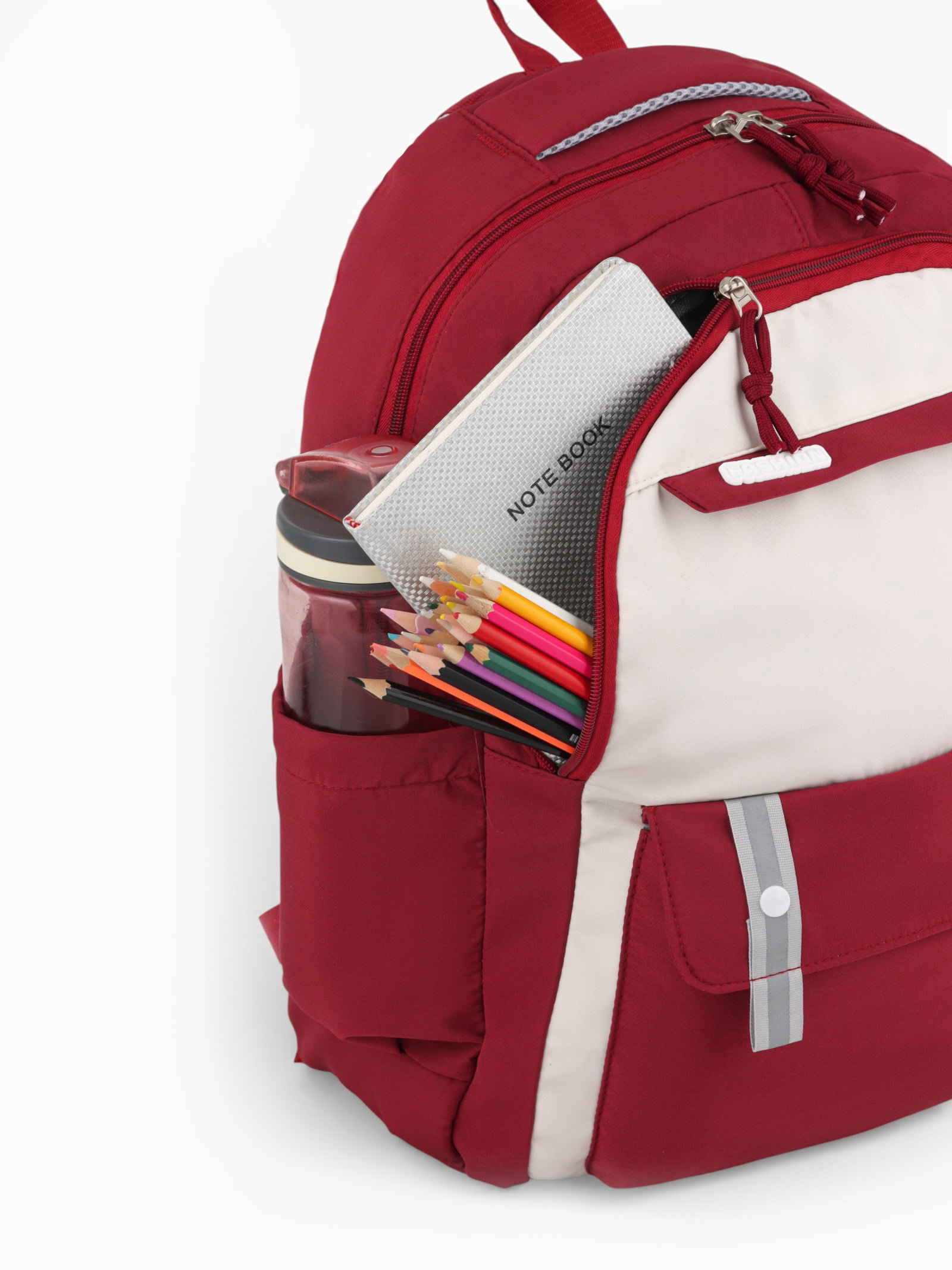 Рюкзак школьный, с пеналом, 2 отделения, 3 кармана, 31x14x44 см, бордовый, 14x31x44 см., Китай