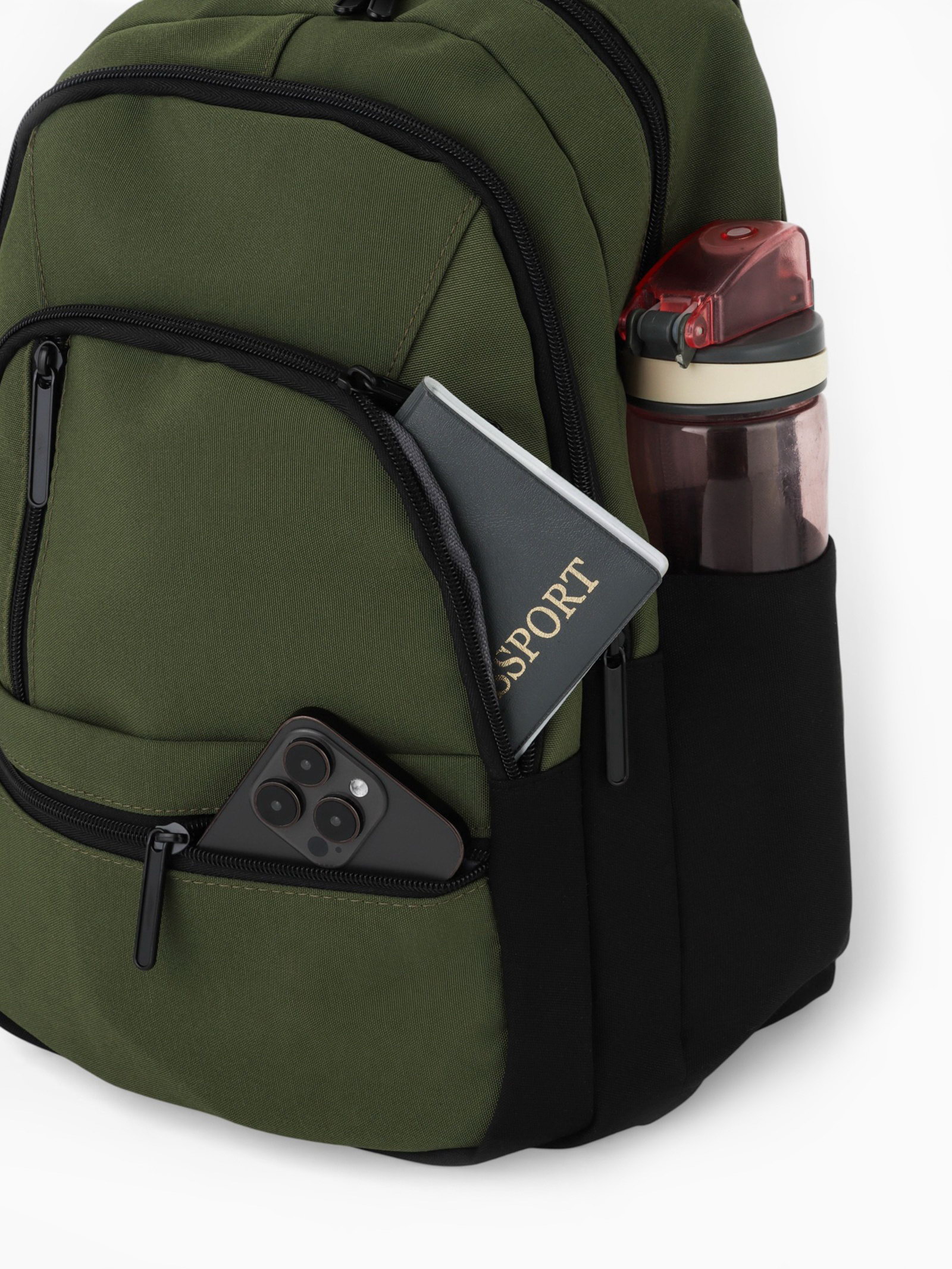 Рюкзак, 2 отделения, 5 карманов, водонепроницаемое дно, 26x14x39 см, зелёный, 14x26x39 см., Китай