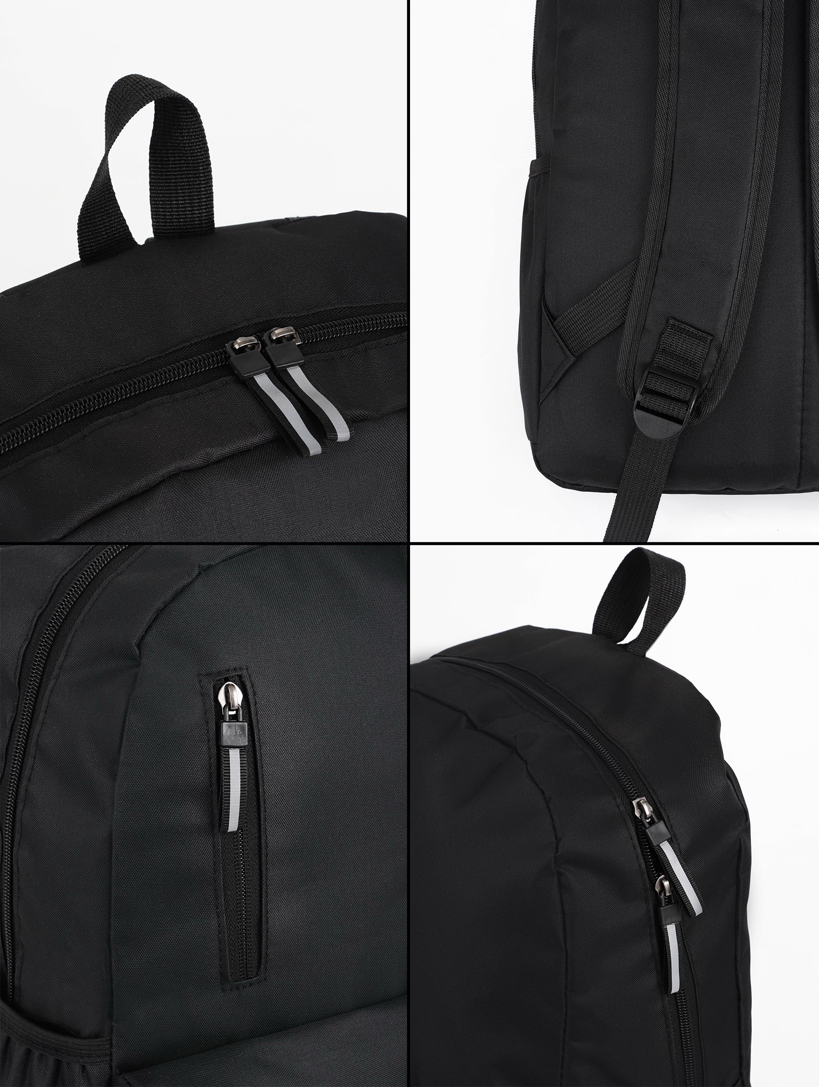 Рюкзак школьный, однотонный, 4 кармана, 30x12x43 см, чёрный, 12x30x43 см., Китай