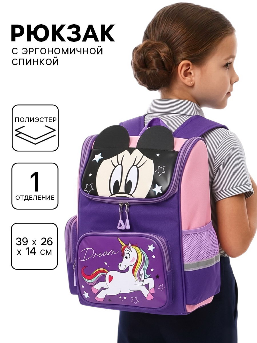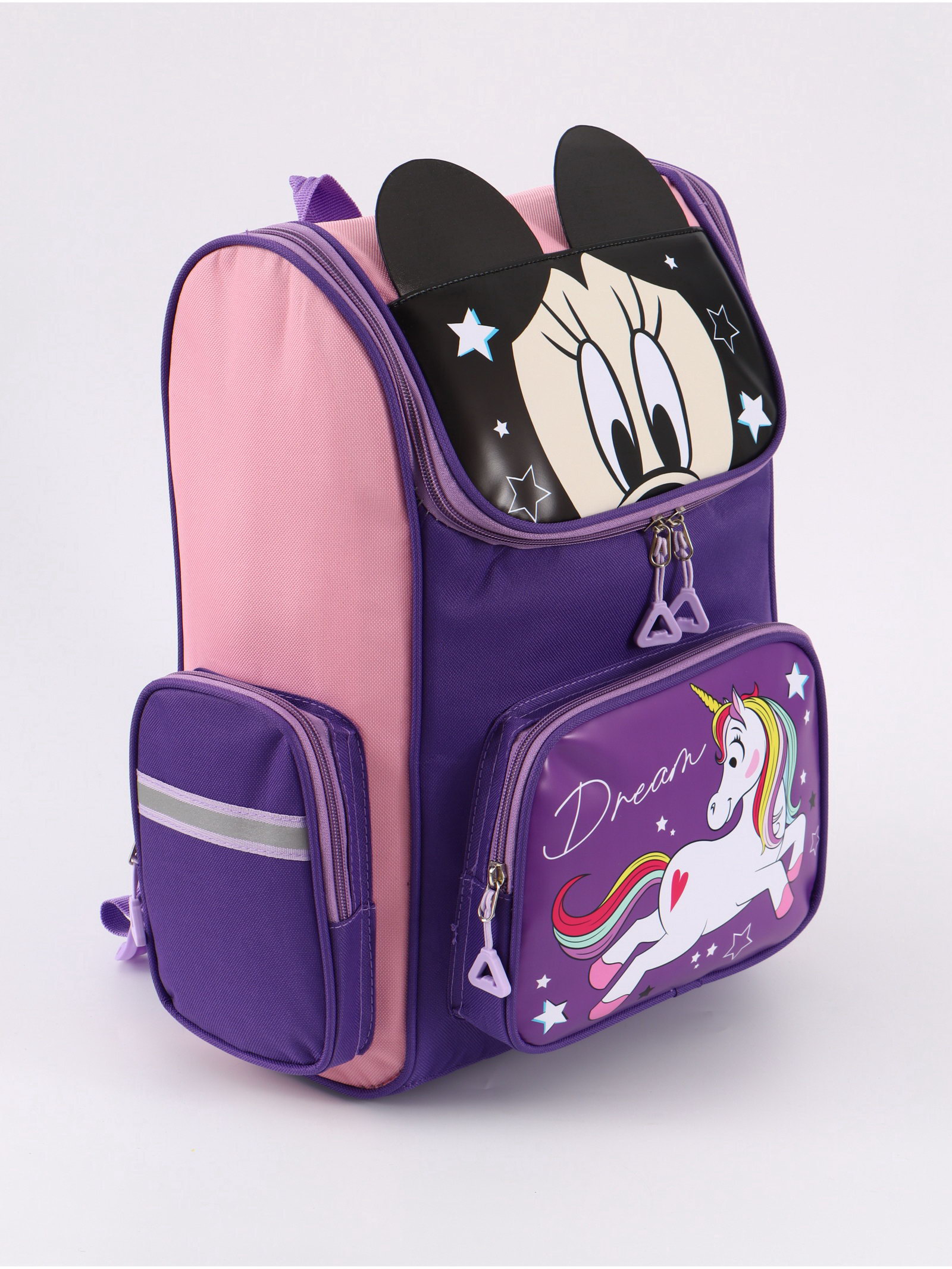 Ранец с эргономичной спинкой, квадратный с доп. элементом "Минни и единорог", 26x39x14 см., Disney, Китай