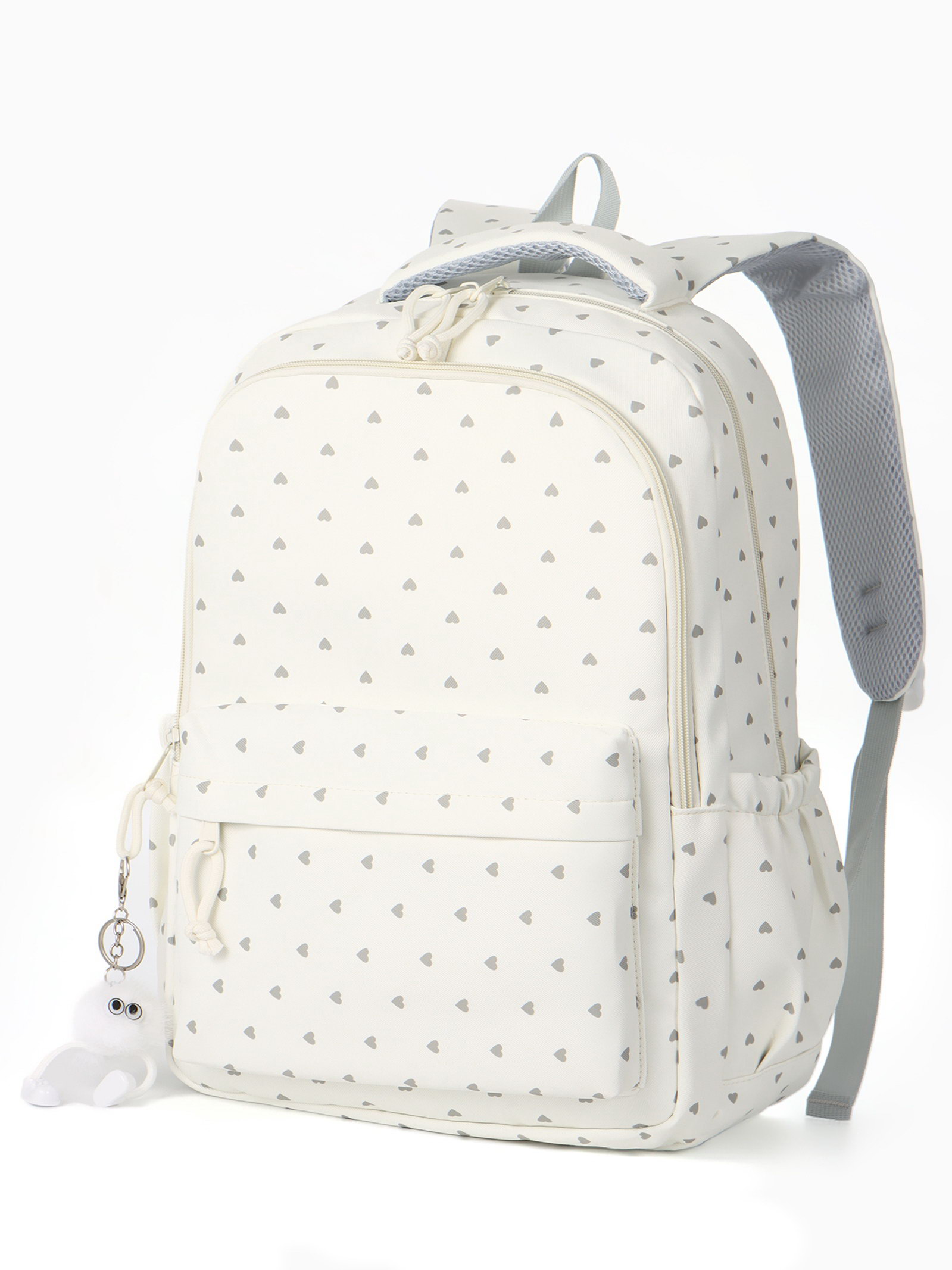 Рюкзак школьный для девочки "Сердца", 4 кармана, 31x13x48 см, белый, 13x31x48 см., Китай