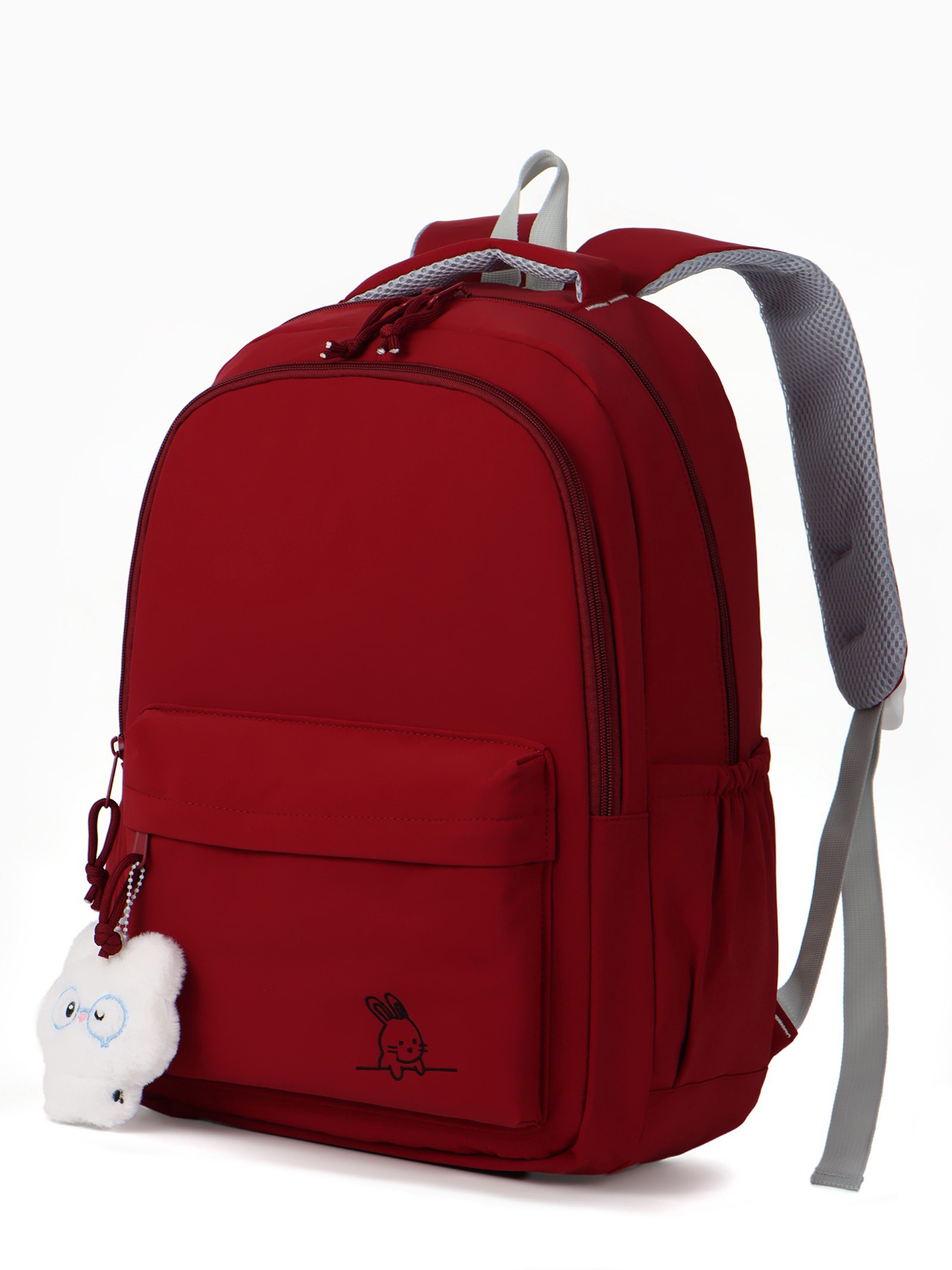Рюкзак школьный "Зайчик", однотонный, для девочки, 31x13x48 см, бордовый, 13x31x46 см., Китай