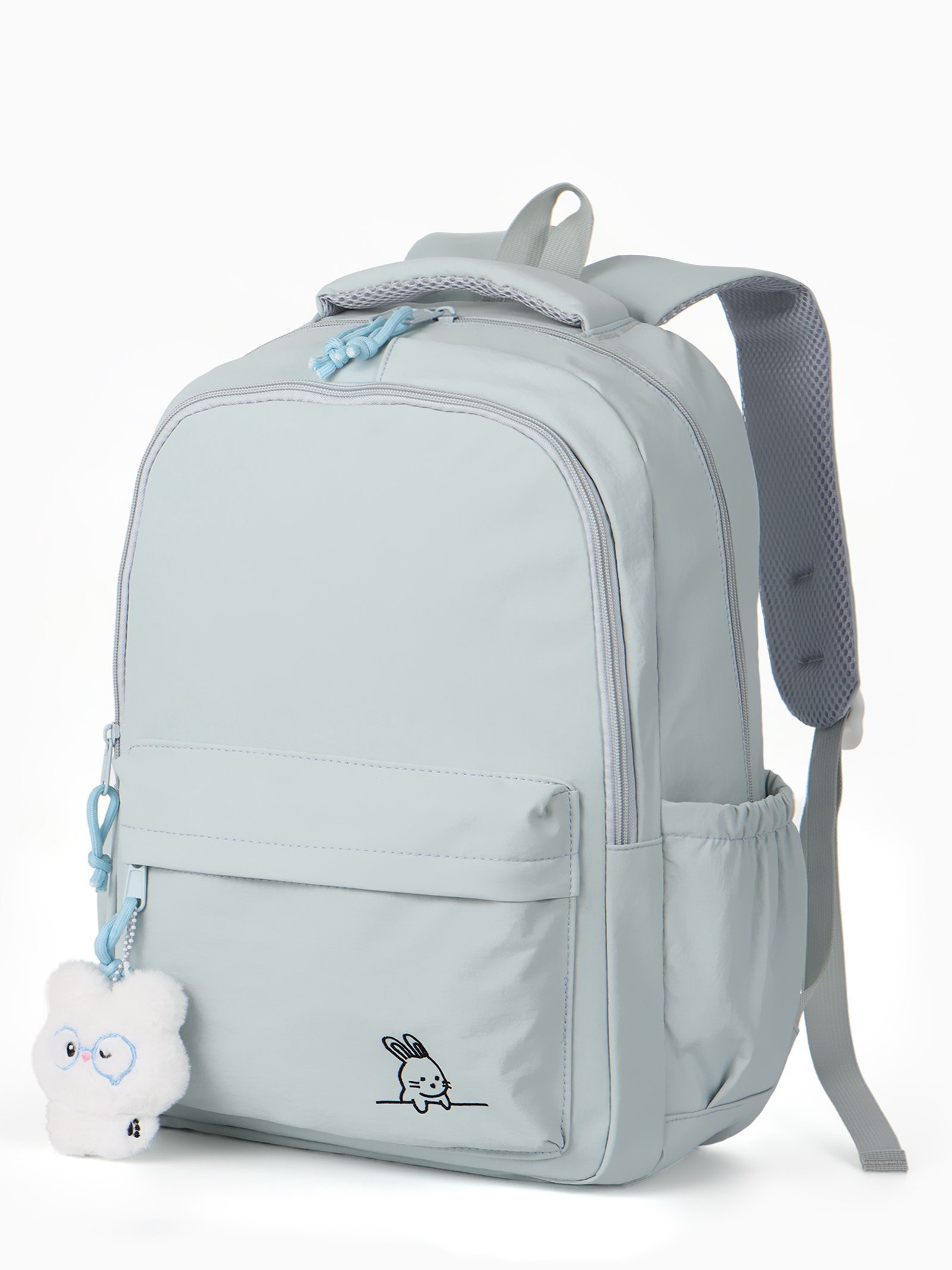 Рюкзак школьный "Зайчик", однотонный, для девочки, 31x13x48 см, голубой, 13x31x46 см., Китай