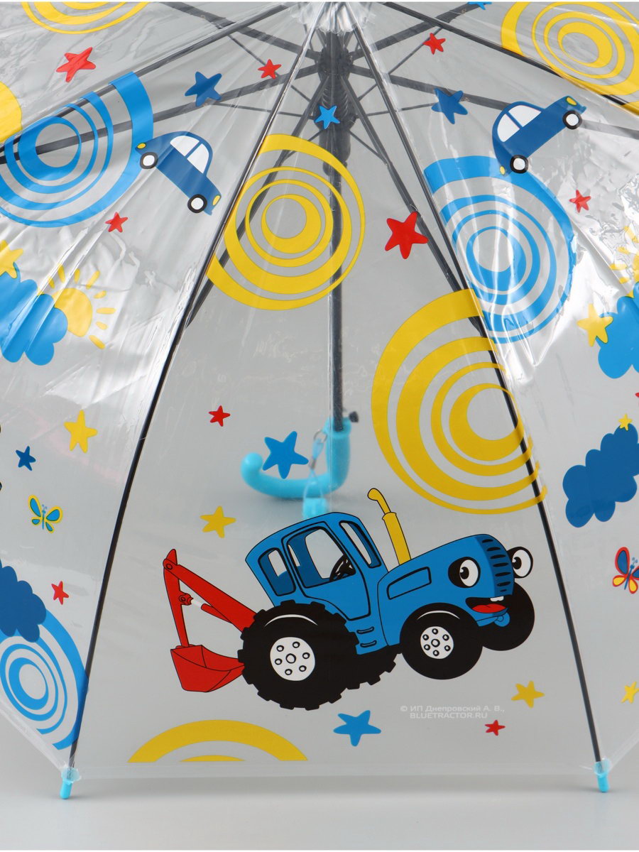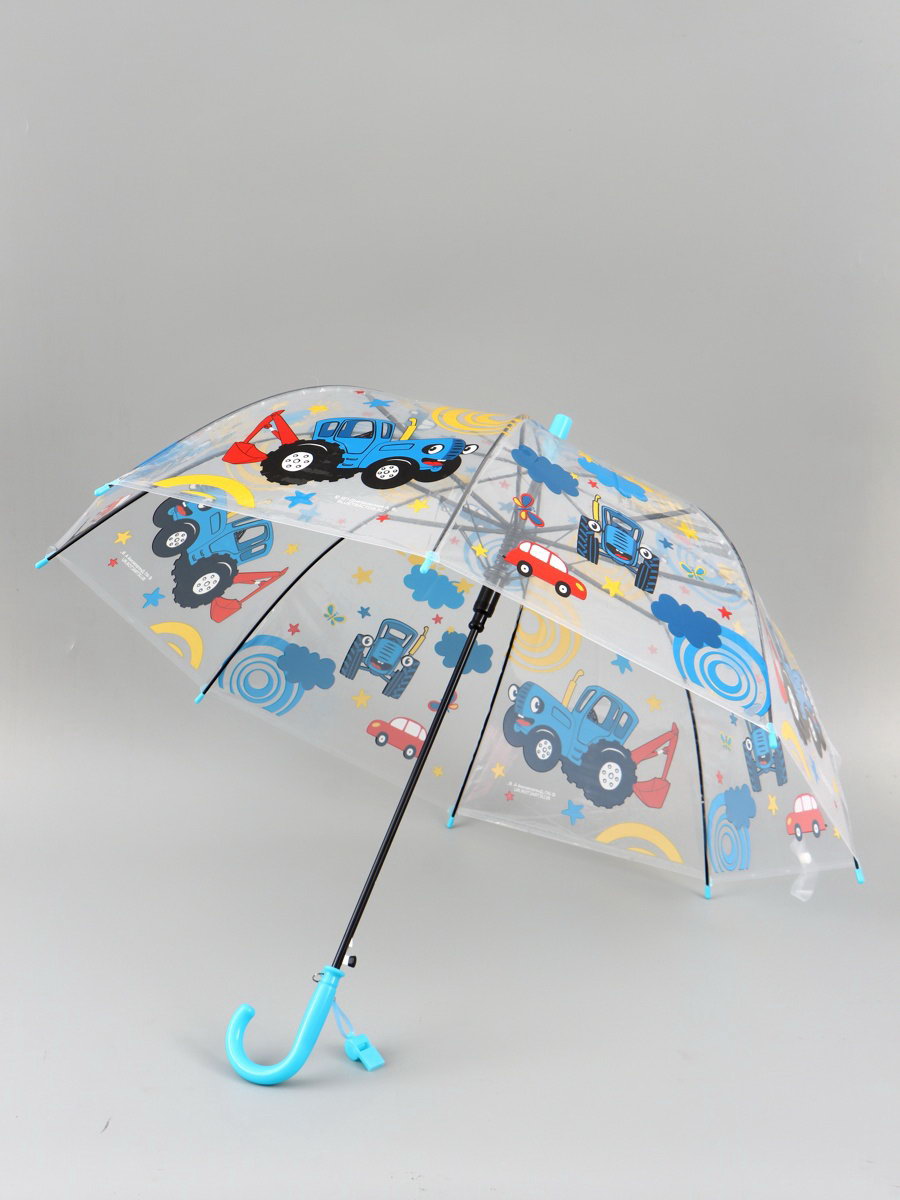 Зонт детский прозрачный купол d=76 см, 76х76х64 см., Синий трактор, Китай