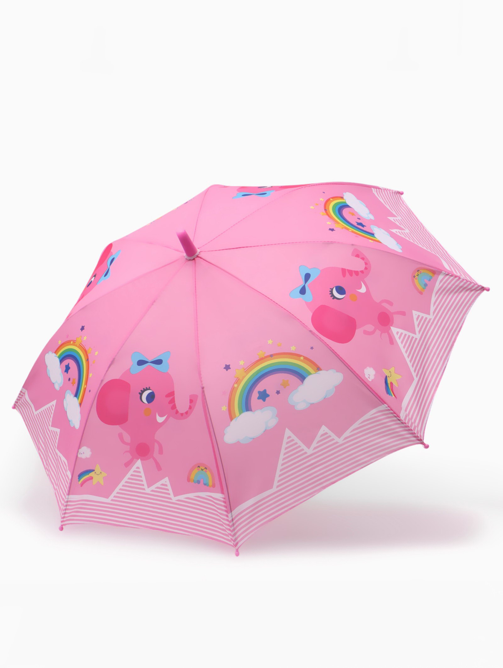 Зонт - трость детский "Слоник", полуавтоматический, R=43/50 см, розовый, 86х86х5 см., QF, Китай