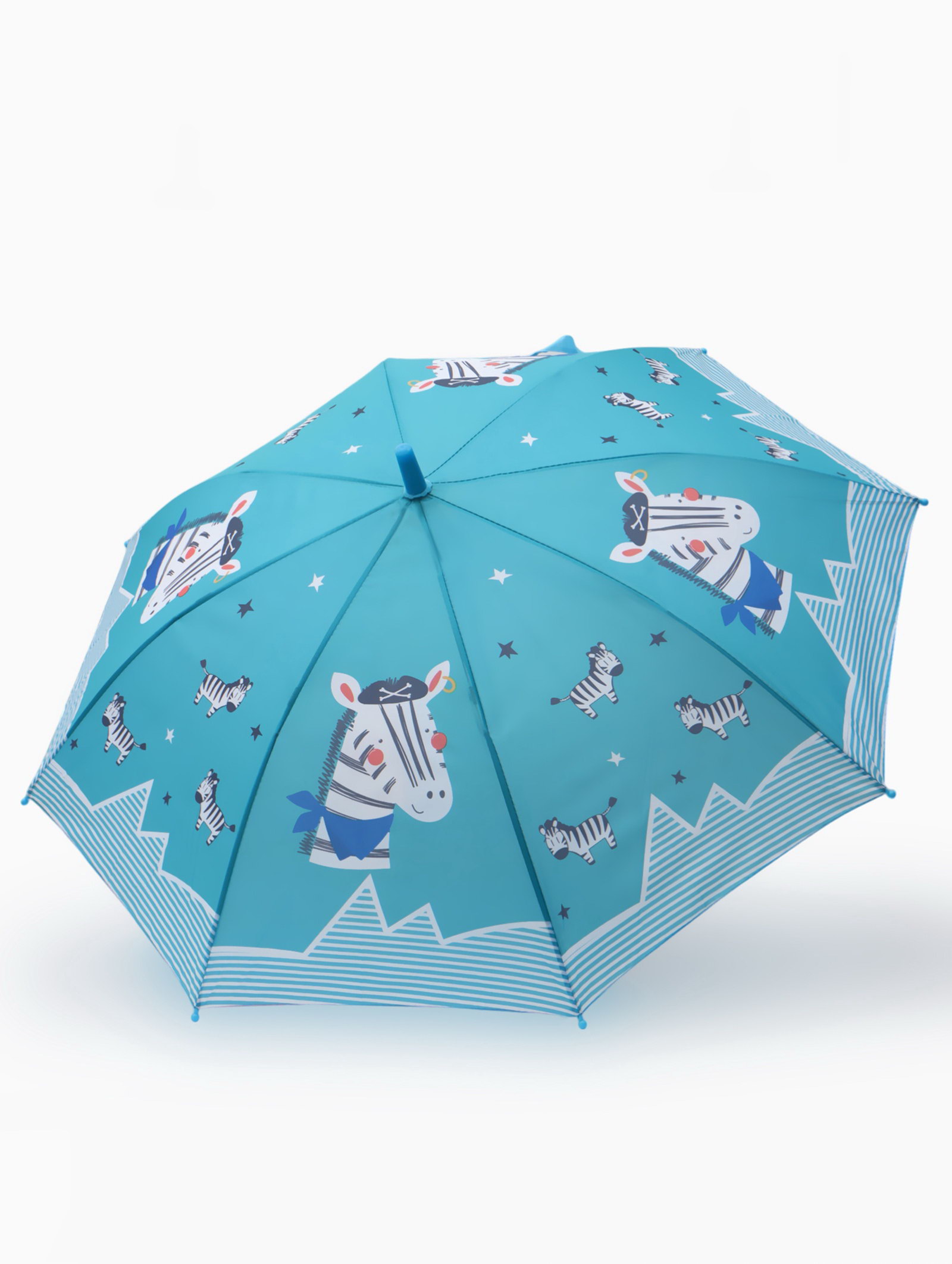 Зонт - трость детский "Зебра", полуавтоматический, R=43/50 см, бирюзовый, 86х86х5 см., QF, Китай