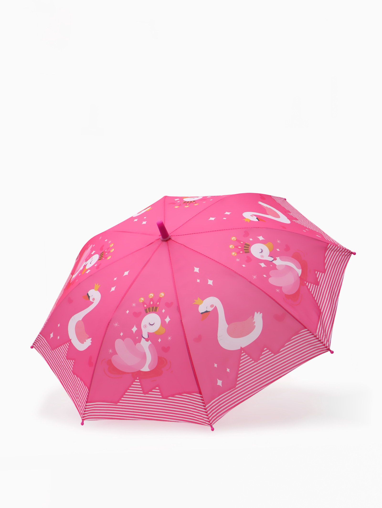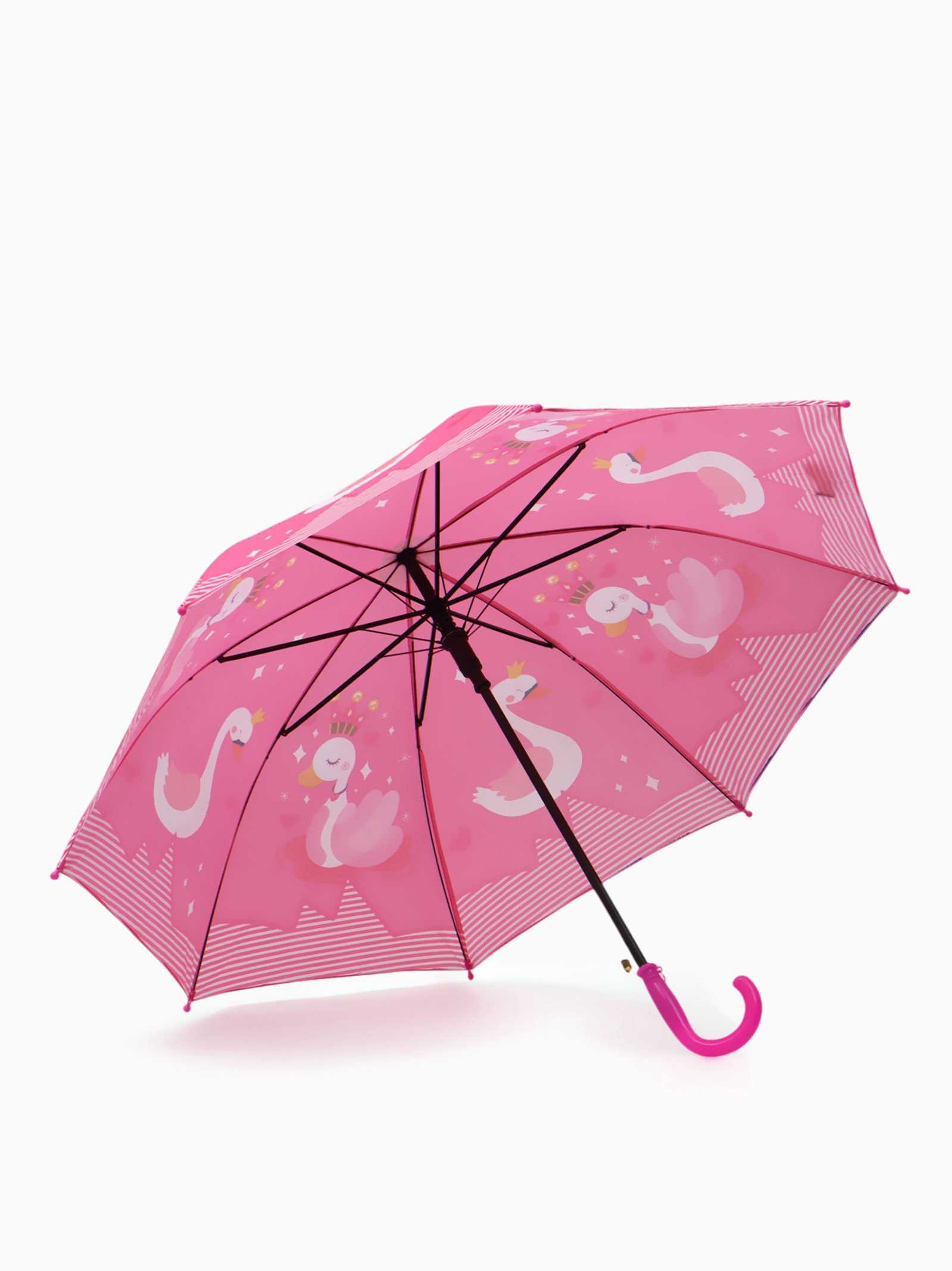 Зонт - трость детский "Лебеди", полуавтоматический, R=43/50 см, розовый, 86х86х5 см., QF, Китай