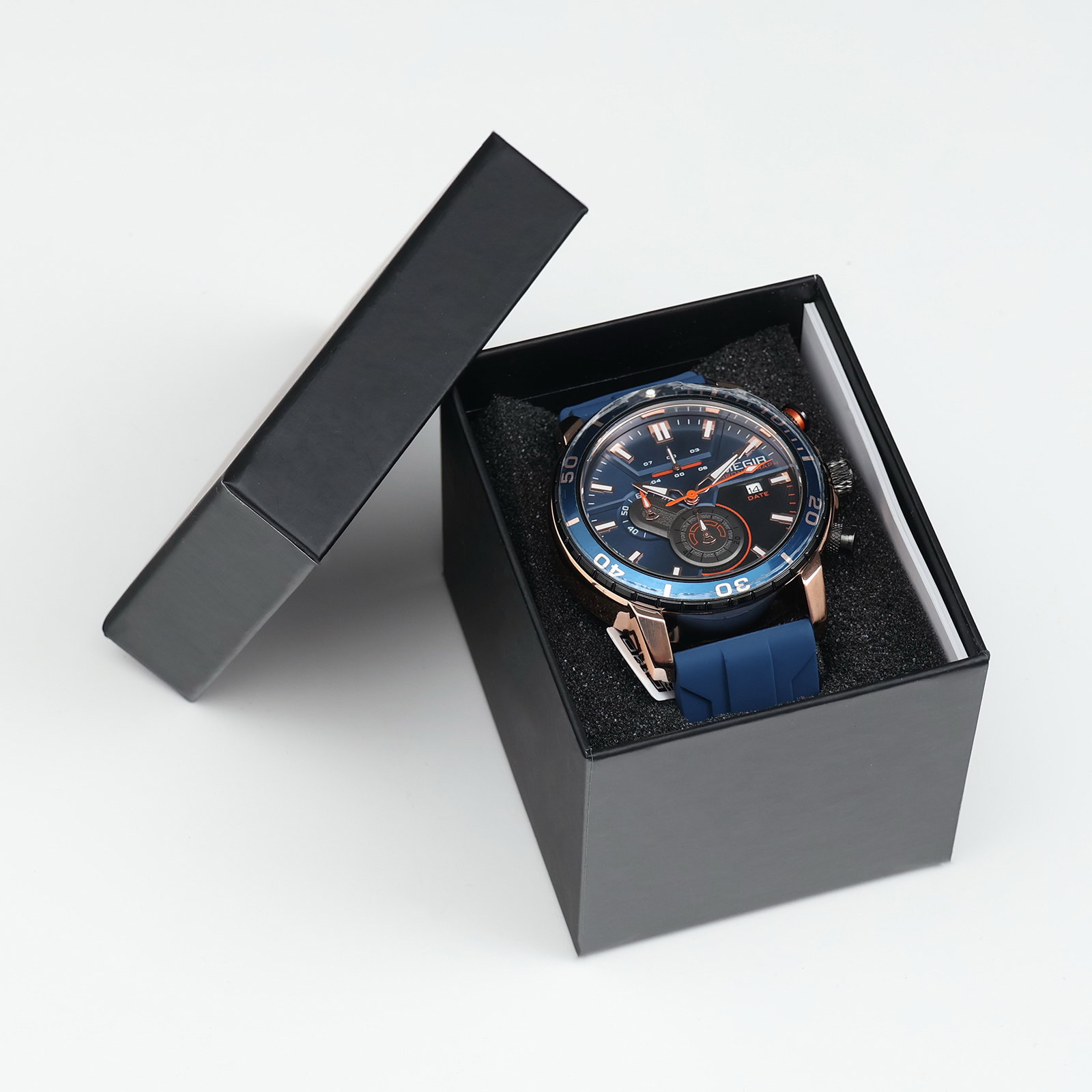 Размер упаковки: 7 x 7.5 x 9 см. Водонепроницаемость: WR30 (3 АТМ) Тип механизма: Кварцевый Способ отображения времени: Аналоговый (стрелки) Календарь: Да Хронограф: Да Скелетон: Нет Материал браслета/ремешка: Силикон Материал стекла: Минеральное Цвет циферблата: Синий Форма корпуса: Круглая Материал корпуса: Цинковый сплав Цвет ремешка: Синий Цвет ремешка: Синий tnved: 9102110000 Для кого: Для мужчины | ||