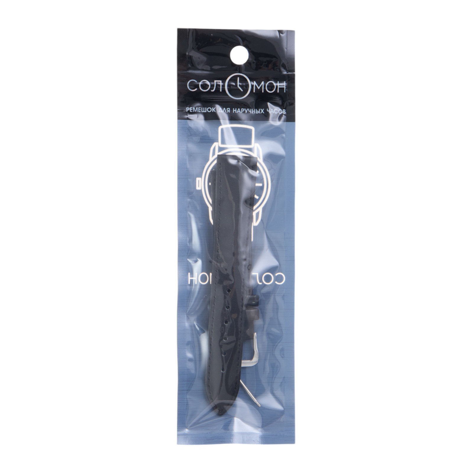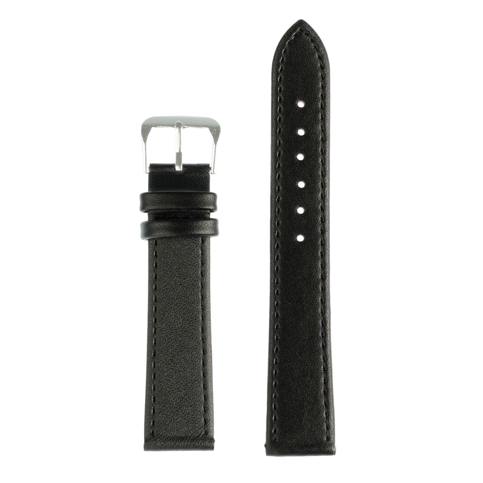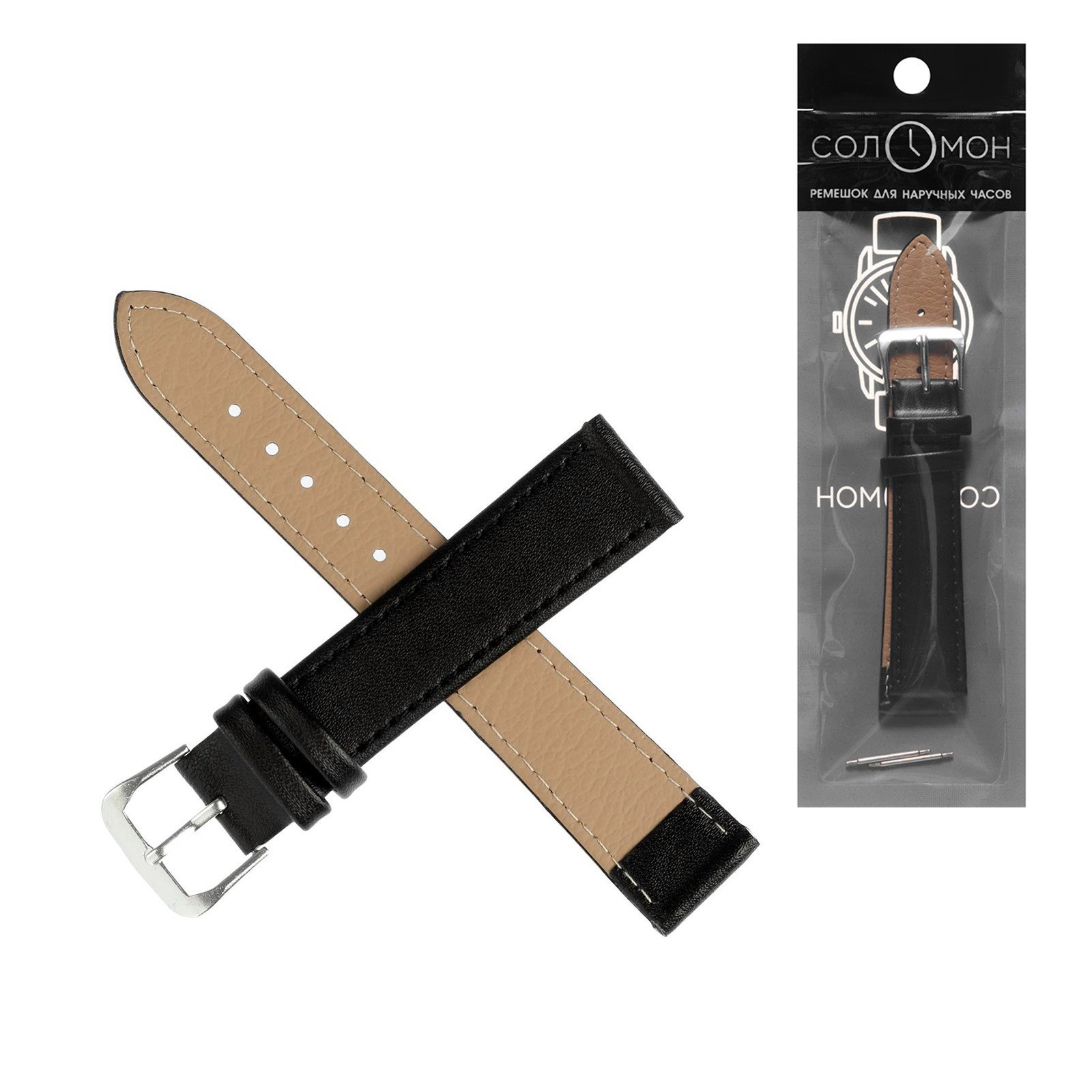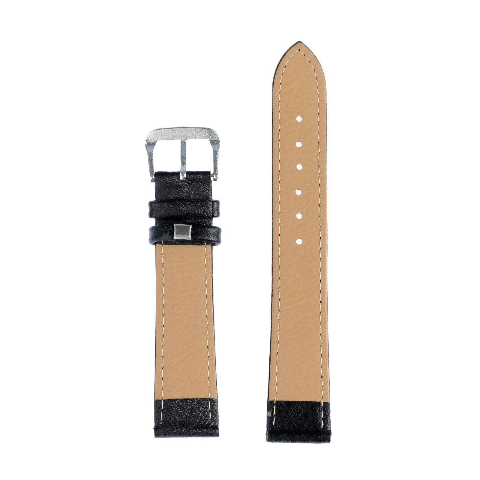 Ремешок для часов 18 мм, натуральная кожа, l-20 см, черный, 20 см., Соломон, Китай