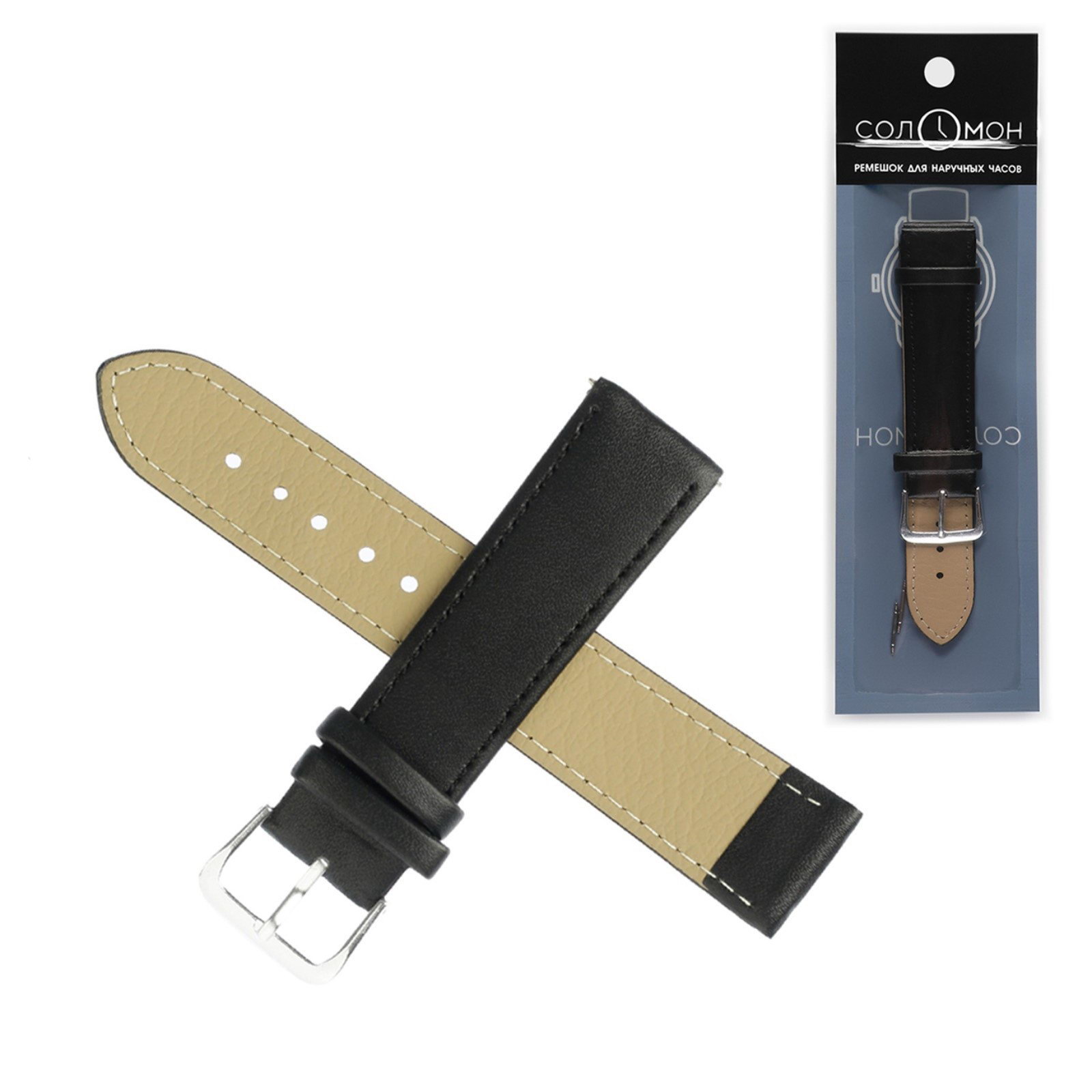 Ремешок для часов 20 мм, натуральная кожа, l-20 см, черный, 20 см., Соломон, Китай