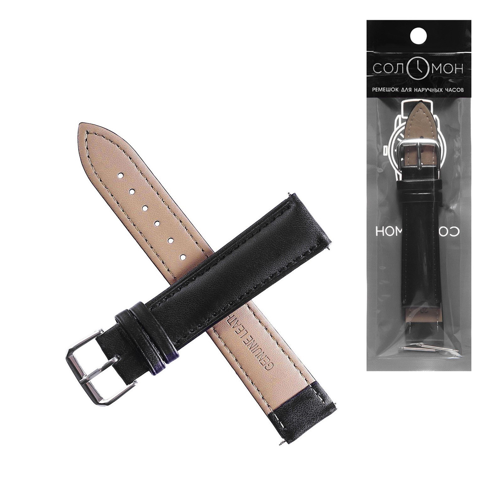 Ремешок для часов 20 мм, натуральная кожа, l-20 см, черный, 20 см., Соломон, Китай