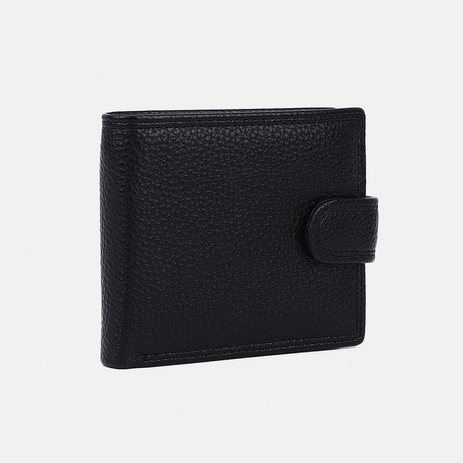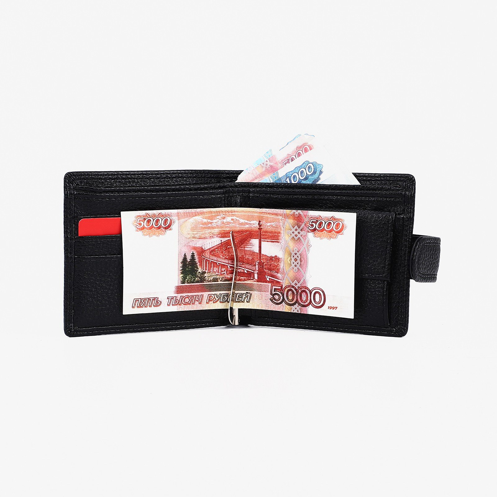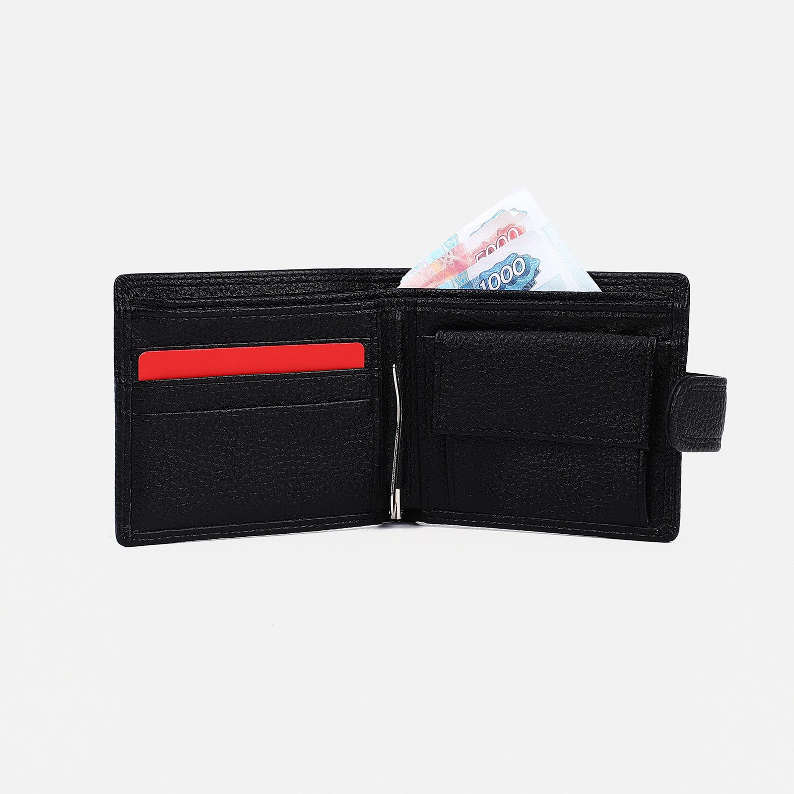Портмоне на кнопке, отдел для купюр, для карт, для монет, зажим для купюр, цвет чёрный, Китай