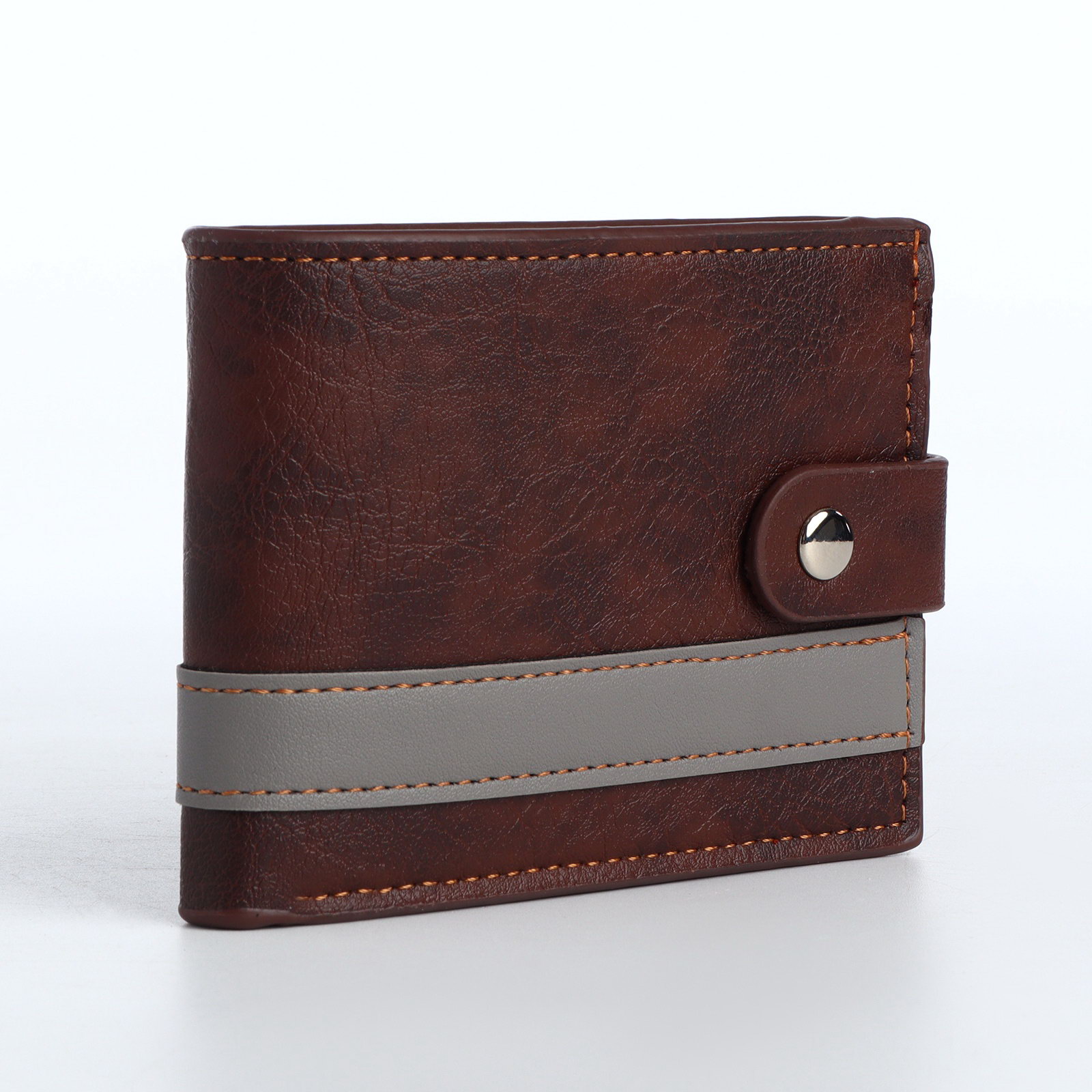 Портмоне мужское на кнопке, отдел для карт, монет, цвет коричневый, 2x11x8.5 см., Китай
