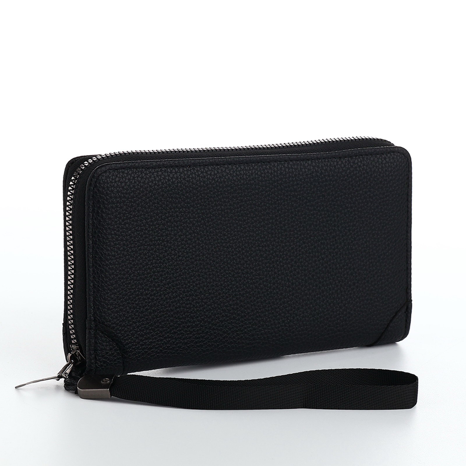 Портмоне мужское на молнии, отдел для карт, монет, цвет чёрный, 2.5x19.5x10 см., Китай