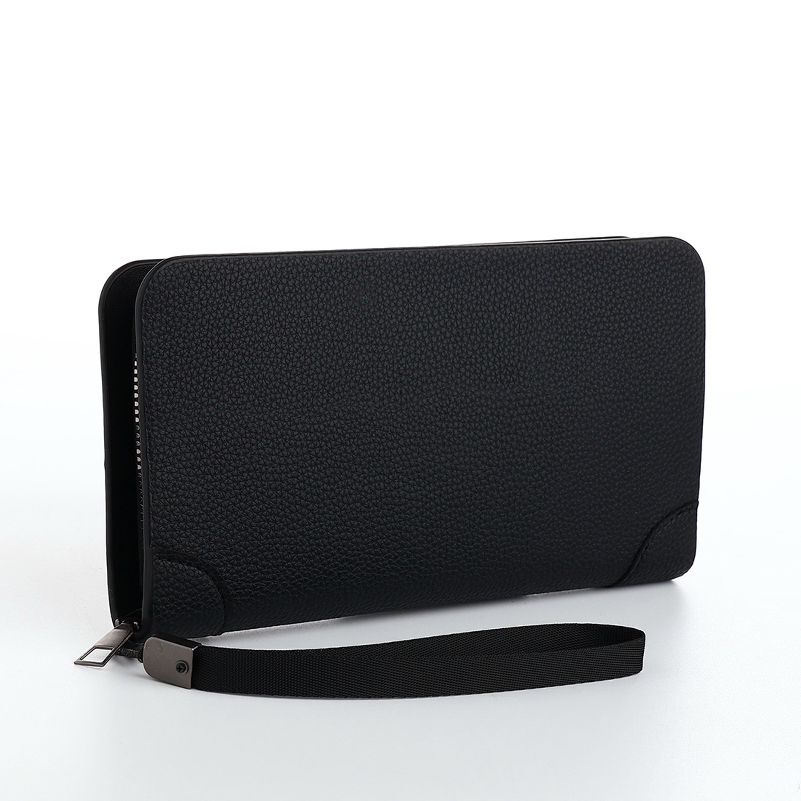 Портмоне мужское на молнии, отдел для карт, монет, цвет чёрный, 3x21x11 см., Китай