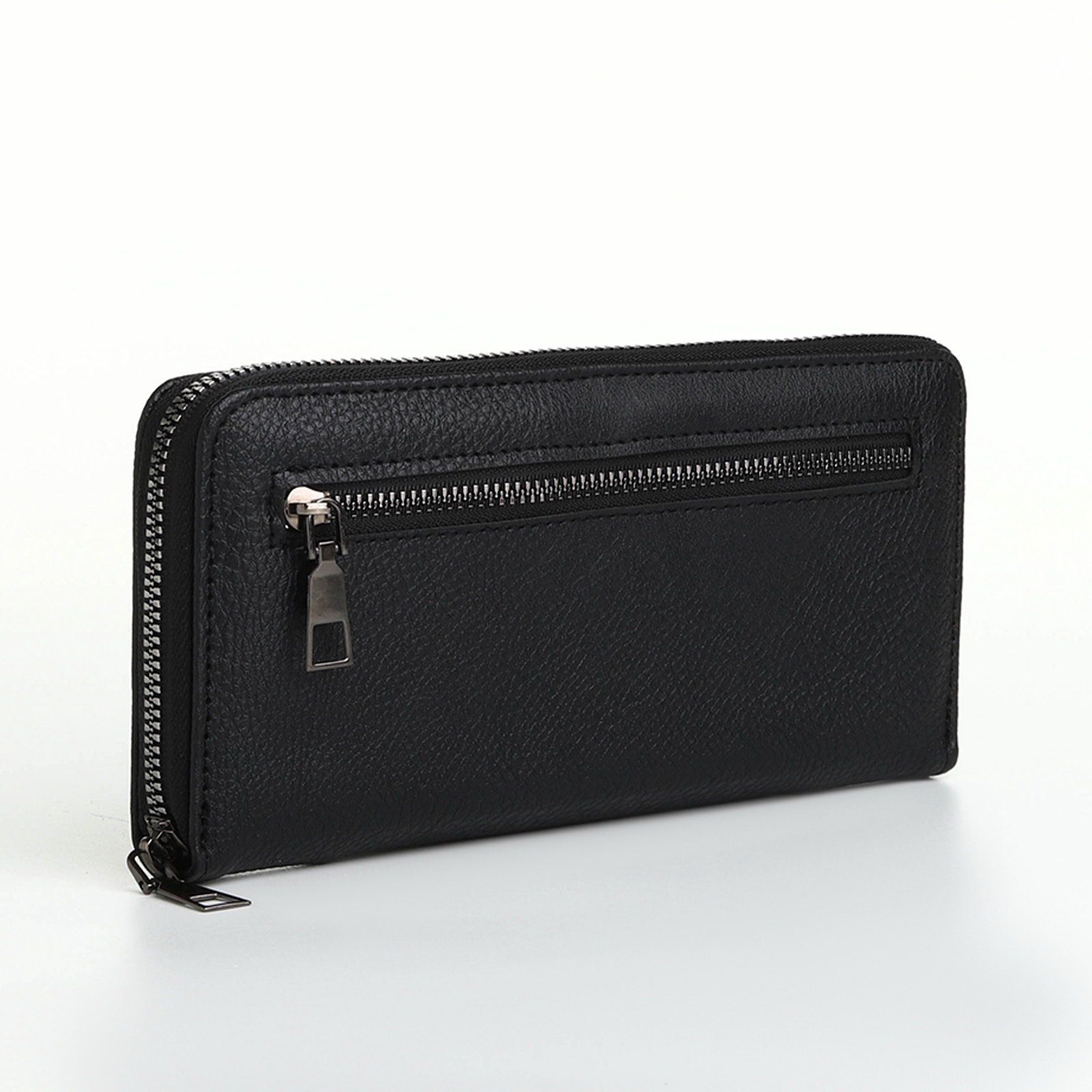 Портмоне мужское на молнии, отдел для карт, монет, цвет чёрный, 2.5x19.5x10 см., Китай
