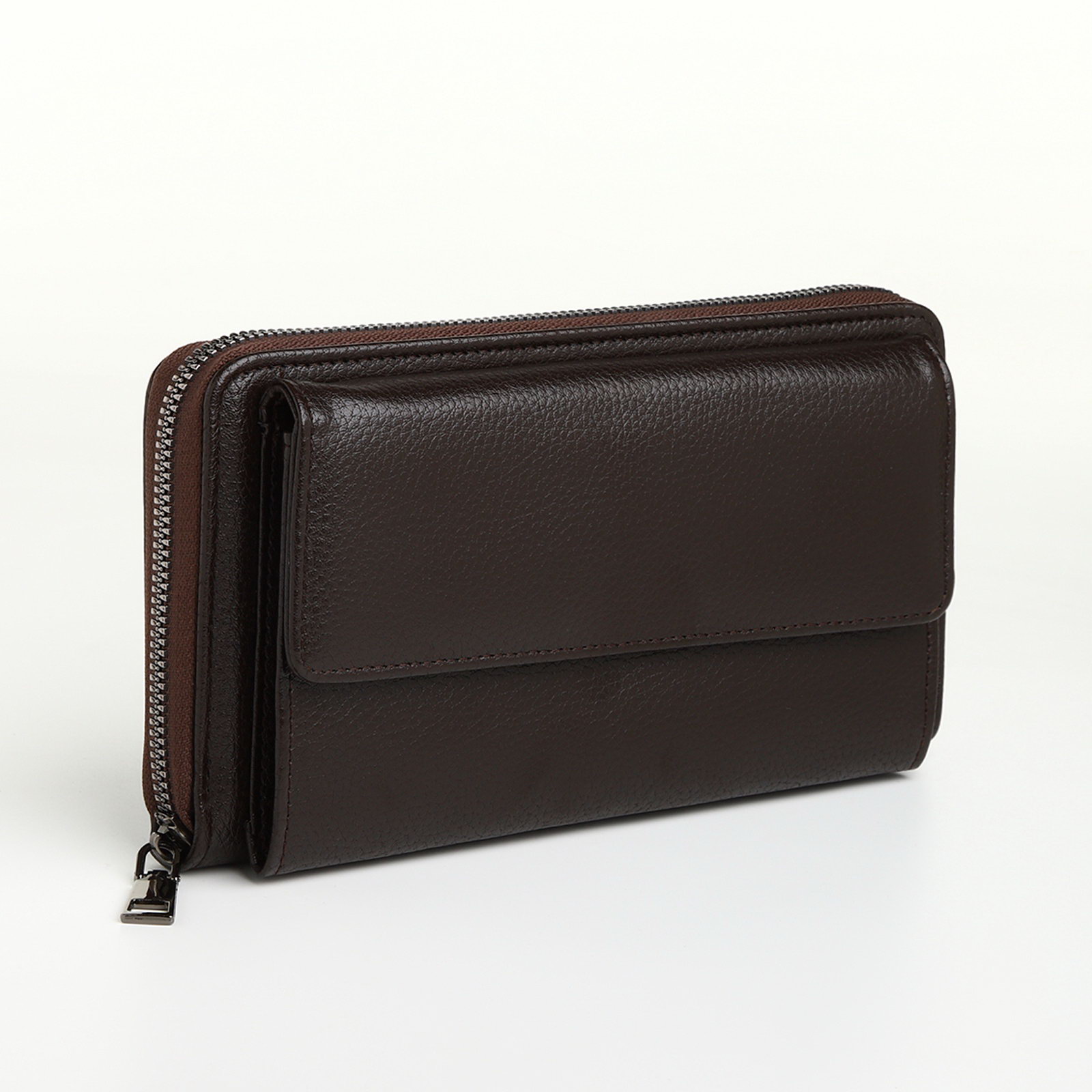 Портмоне-клатч мужской на молнии цвет коричневый, 4.5x21x12 см., TEXTURA, Китай