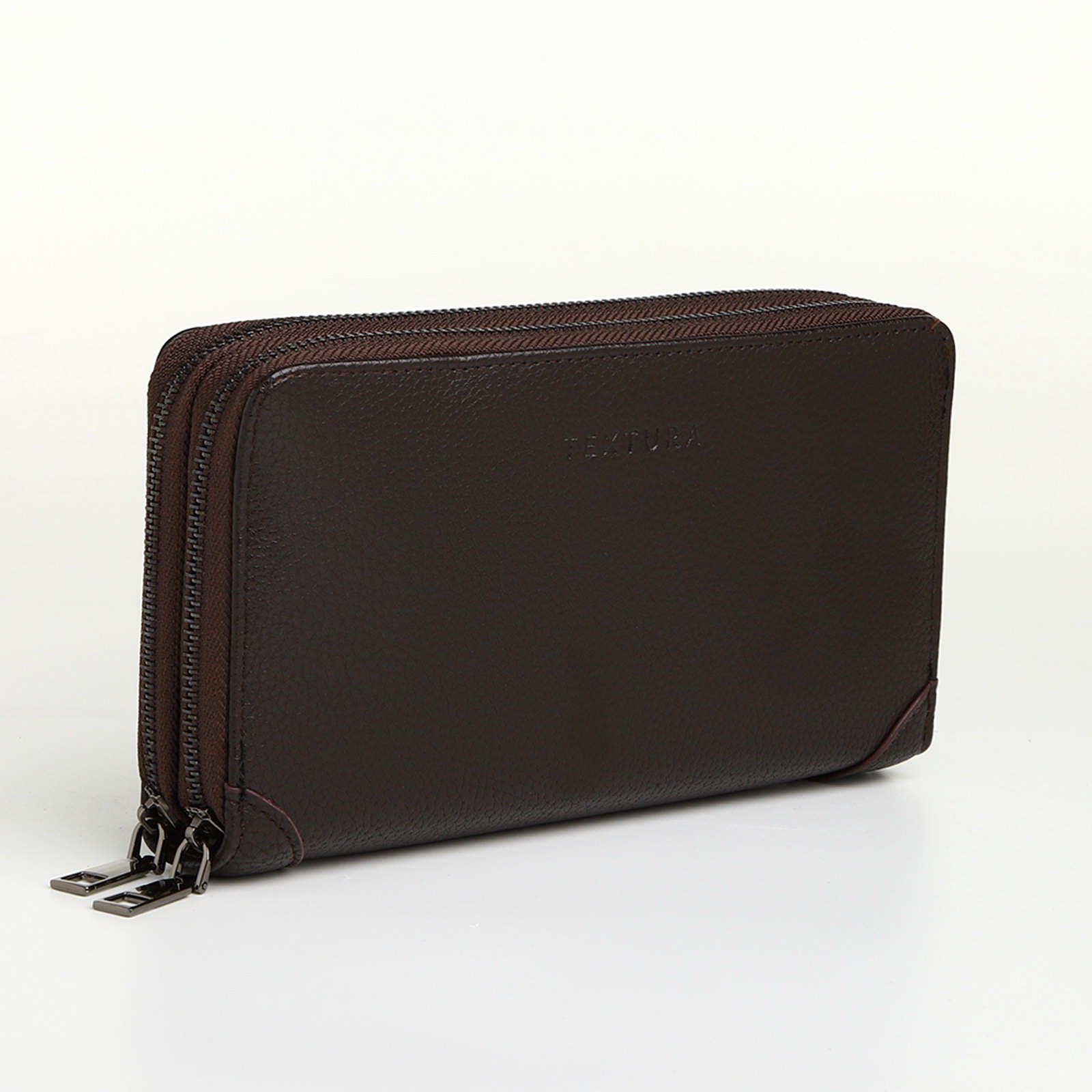 Портмоне-клатч мужской на молнии цвет коричневый, 4.5x21x11 см., TEXTURA, Китай