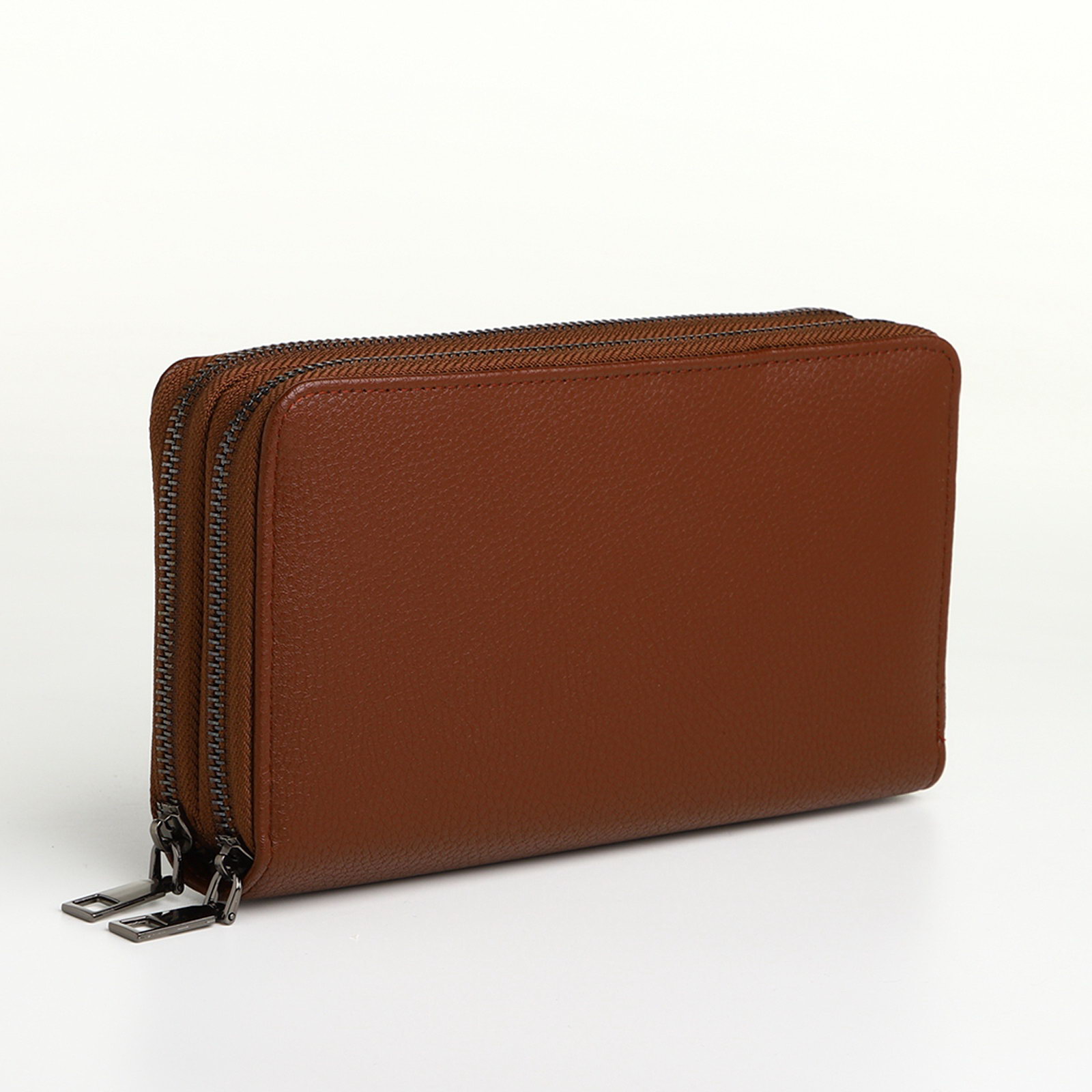 Портмоне-клатч мужской на молнии цвет коричневый, 4x20x10 см., TEXTURA, Китай