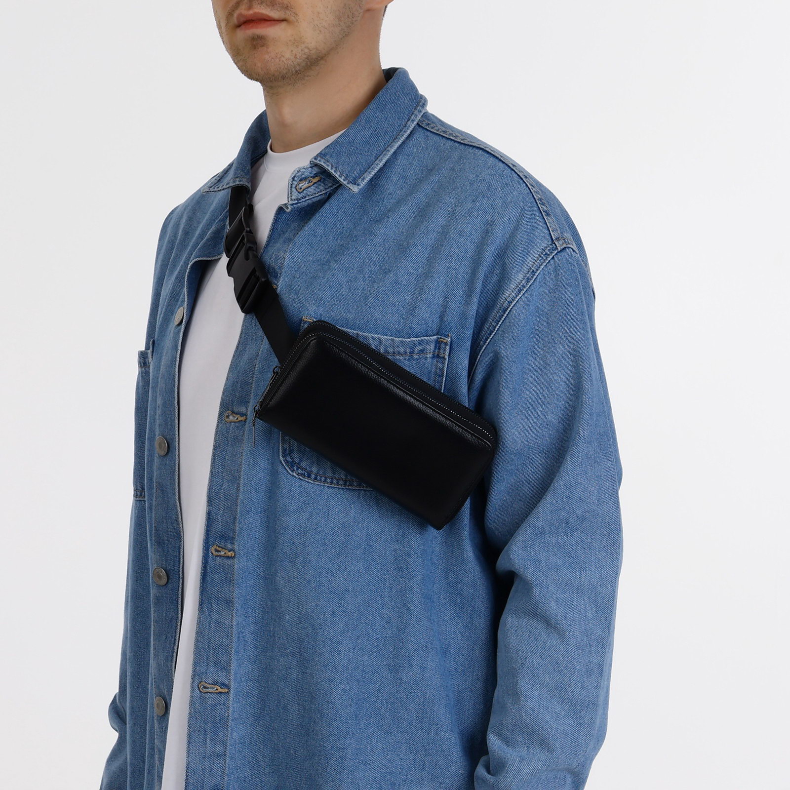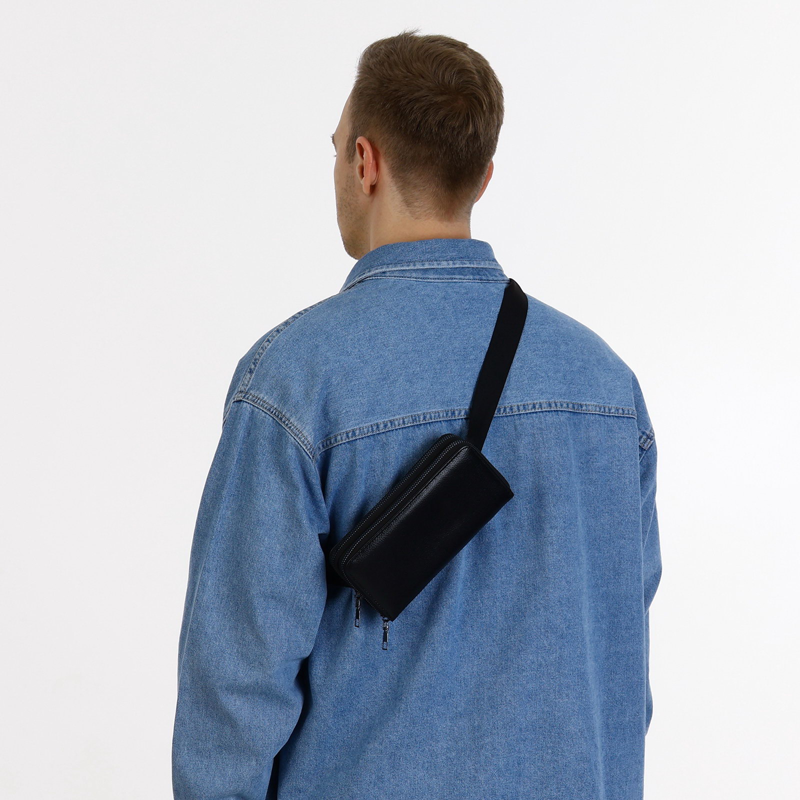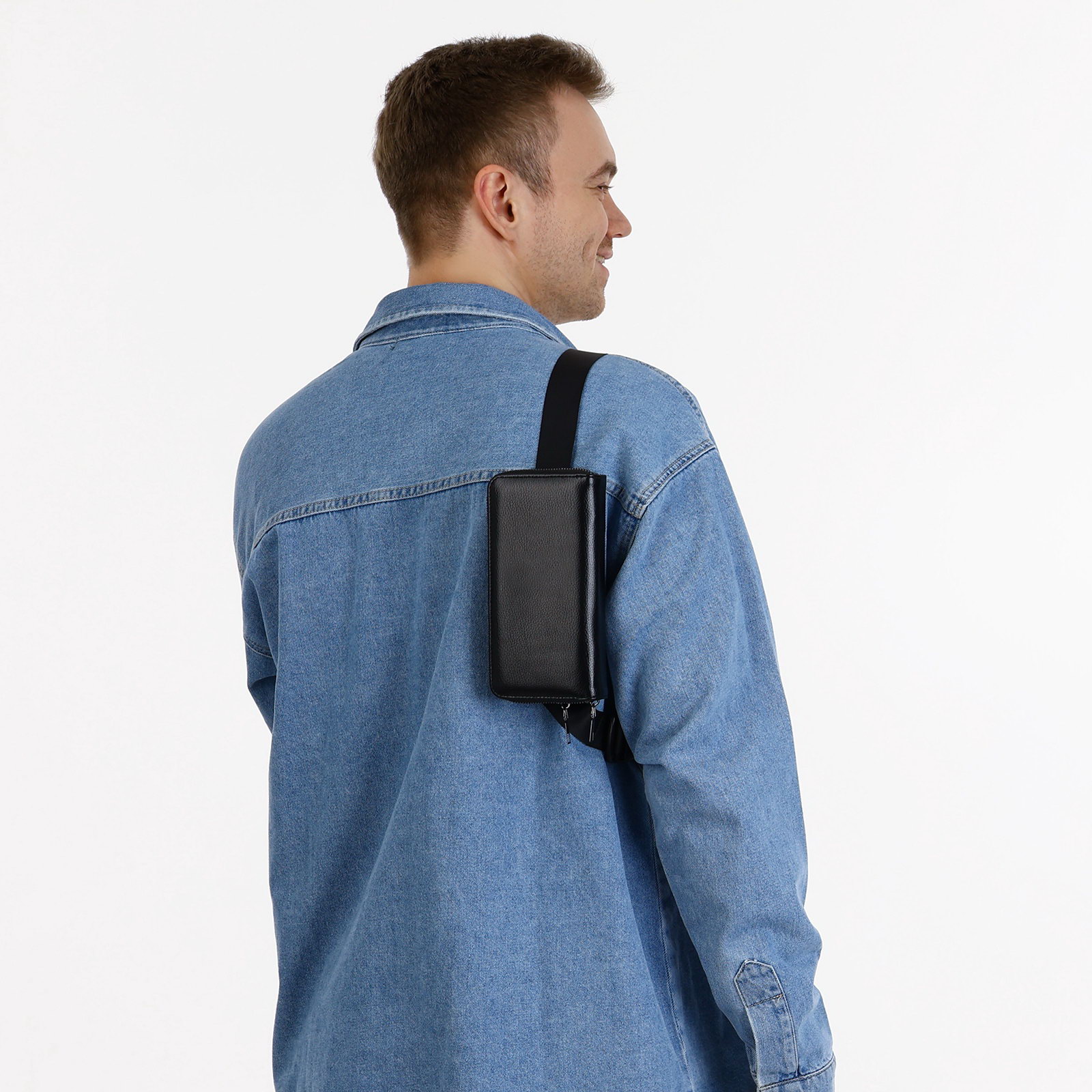 Портмоне-клатч мужской на молнии цвет чёрный, 4.5x20x10 см., TEXTURA, Китай