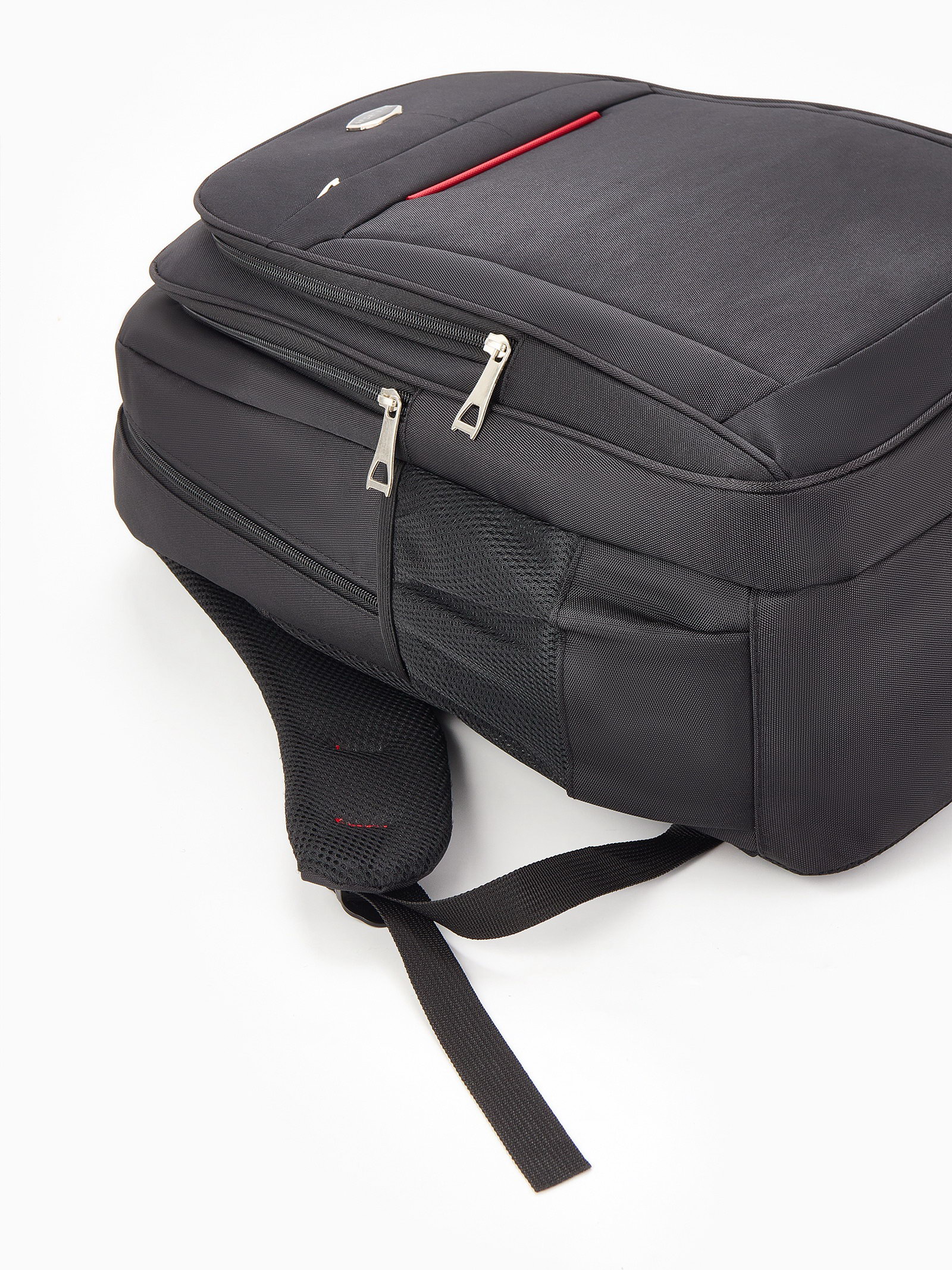 Рюкзак молодёжный из текстиля, 2 отдела на молнии, 4 кармана, цвет чёрный/красный, 17x37x54 см., КИТАЙ