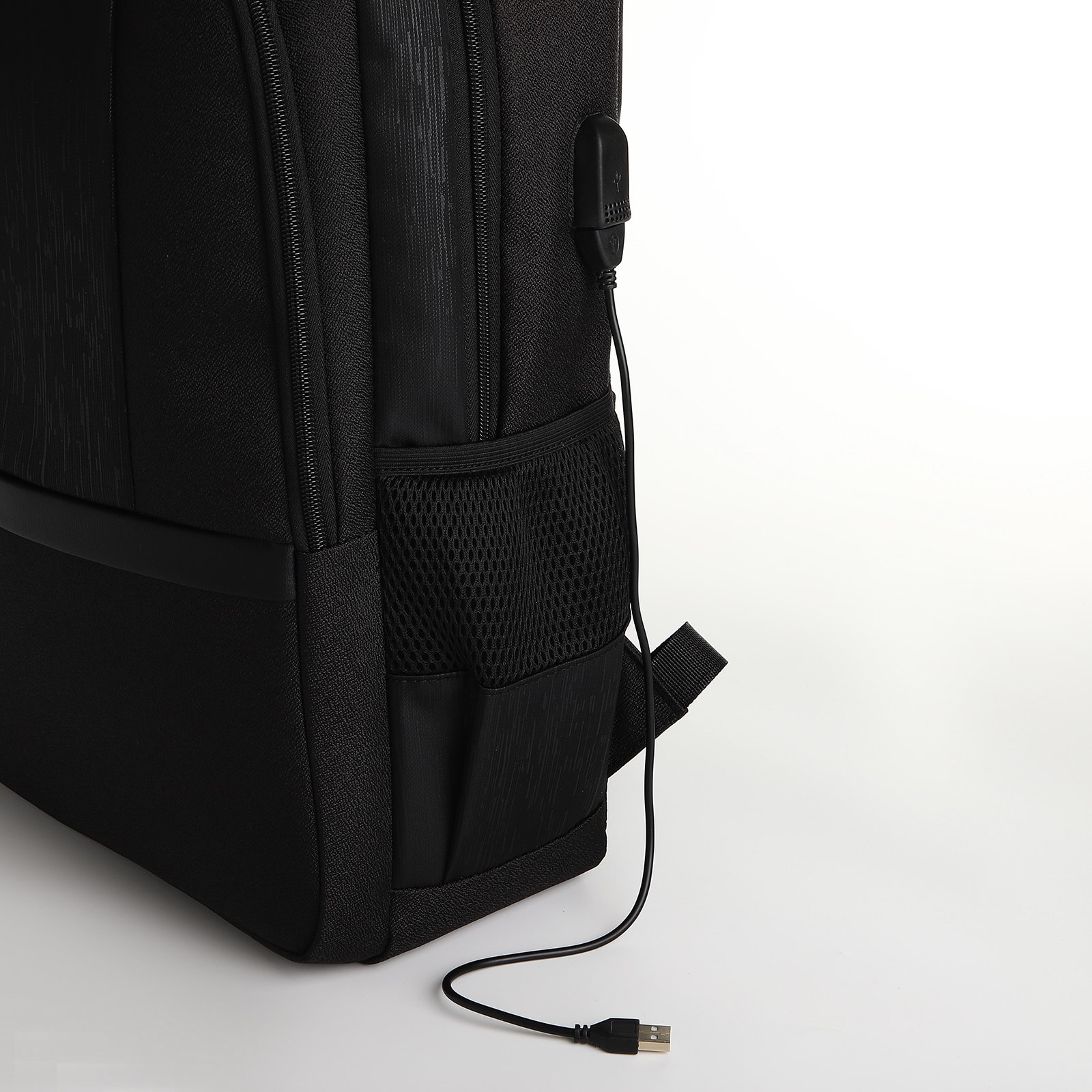 Рюкзак школьный, 2 отдела на молнии, 4 кармана, с USB, чёрный, 15x30x45 см., Китай
