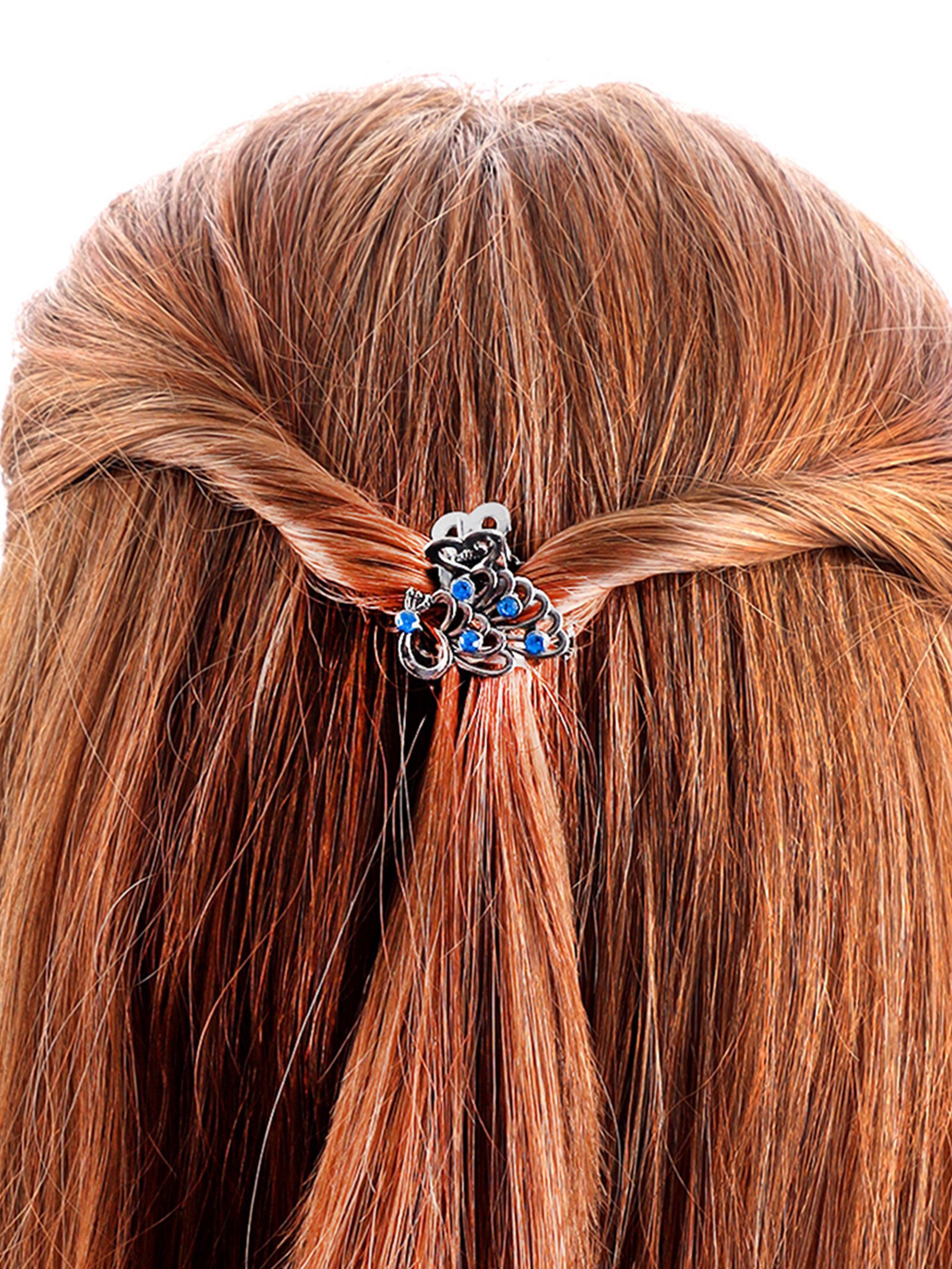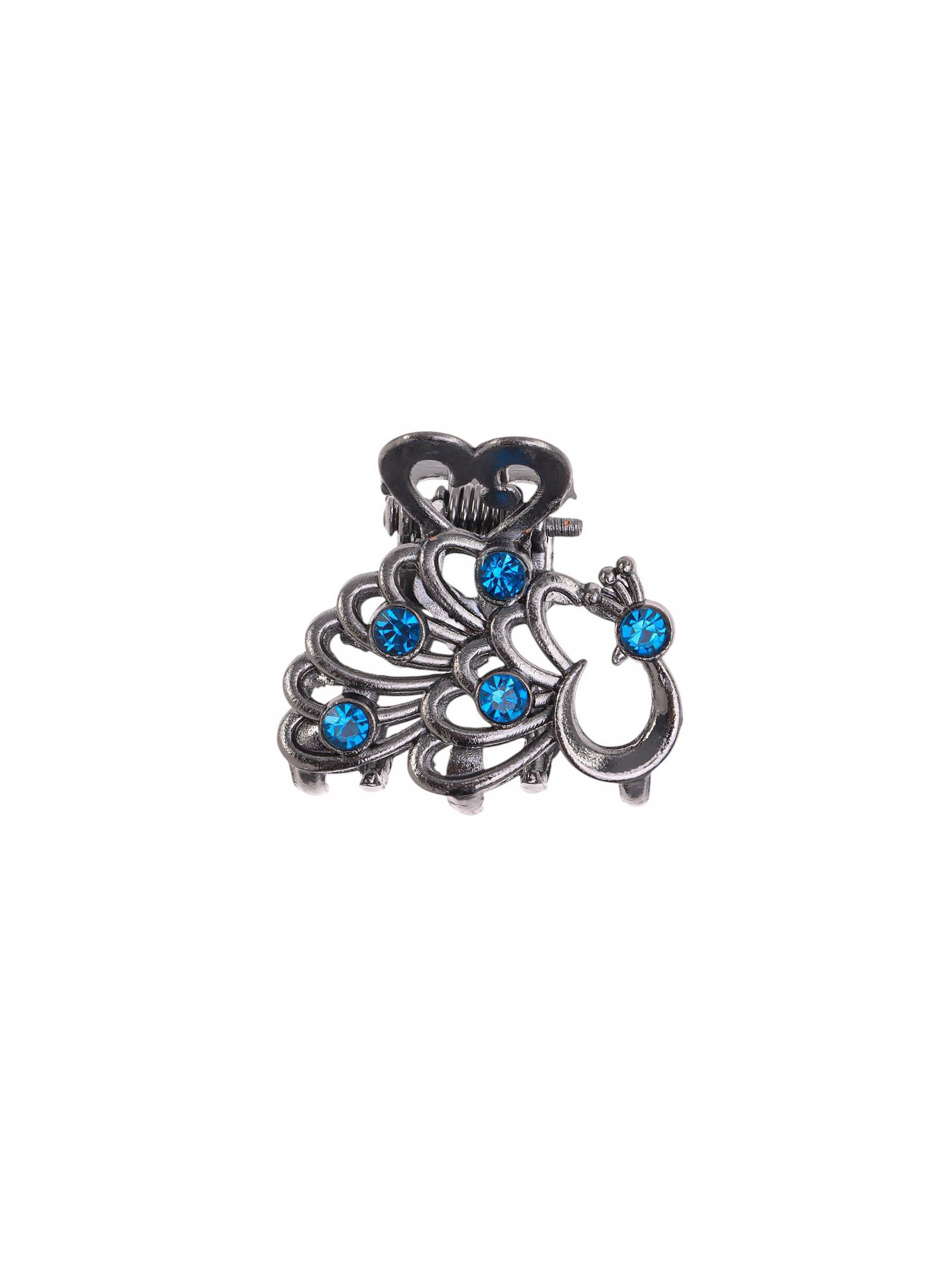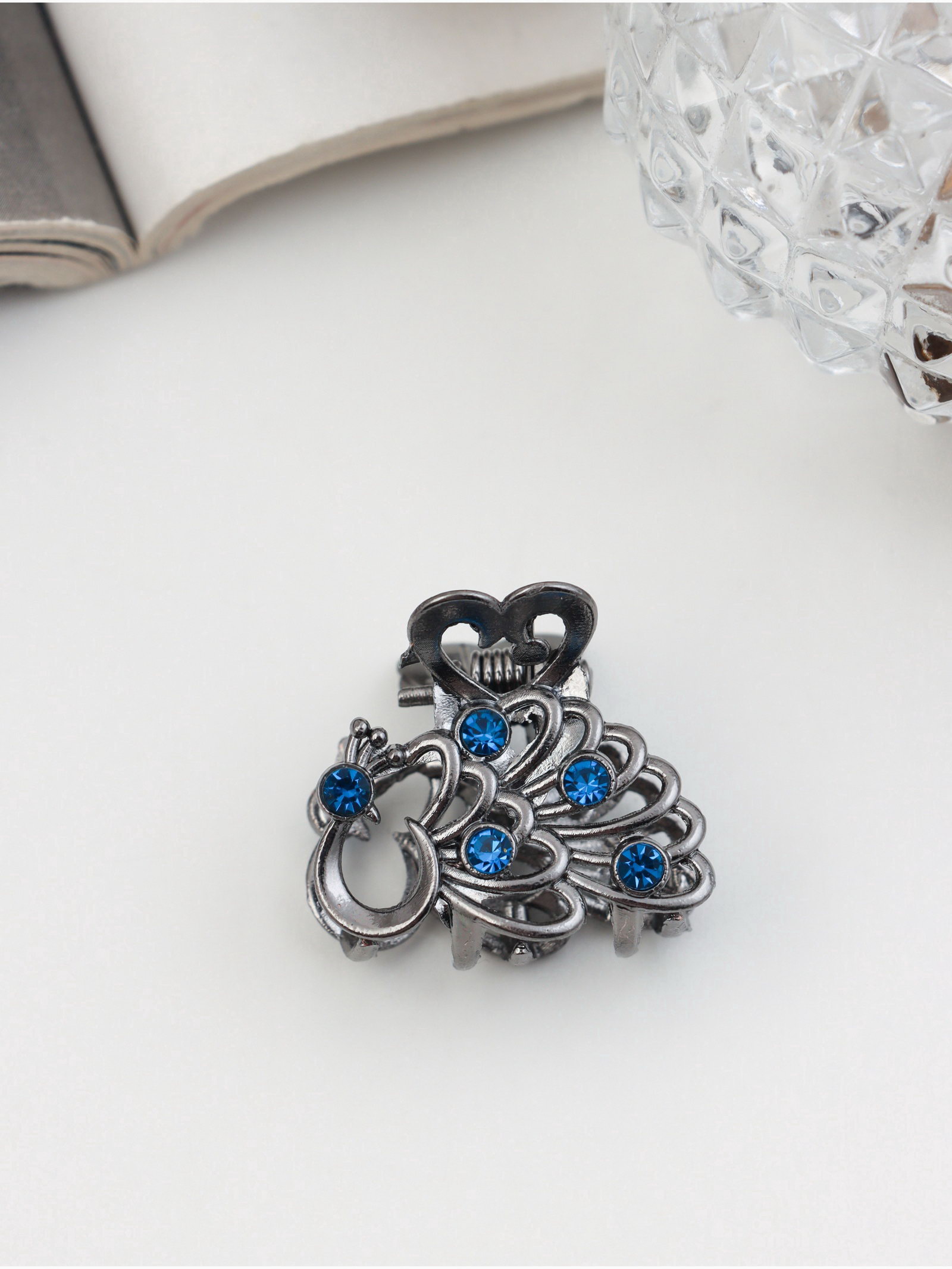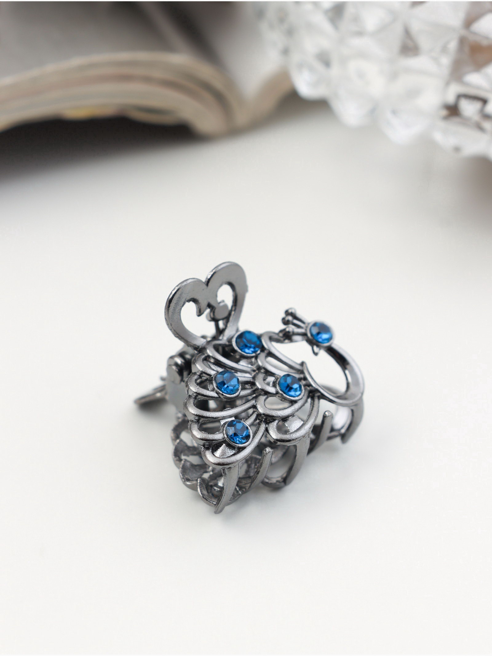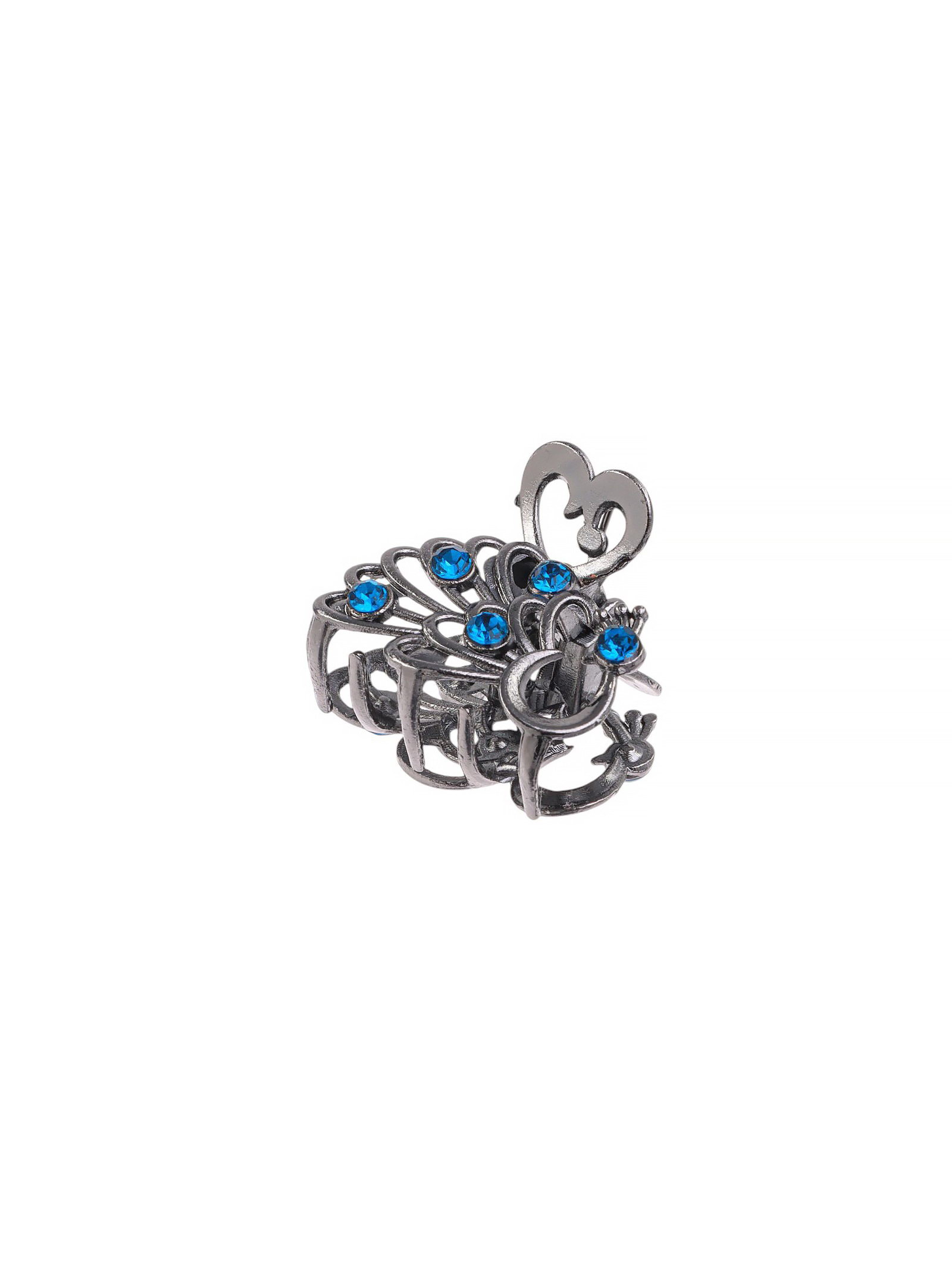 Крабик для волос "Синий туман", павлин, 2.5 см, серебро, 2.5 см., Китай
